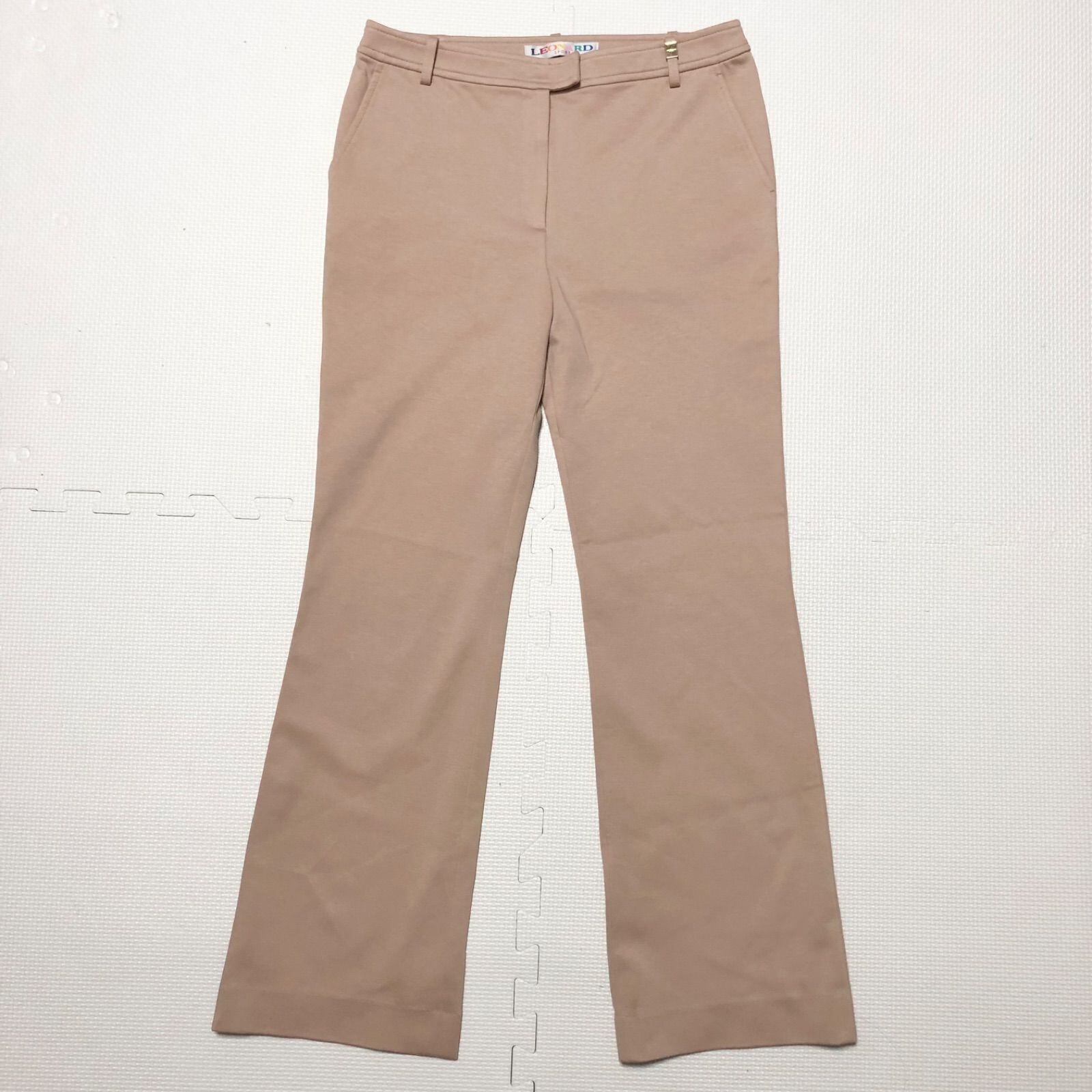 ■美品■LEONARD SPORT レオナールスポーツ パンツ スラックス サイズ67(M~L) ピンクベージュ コットン 刺しゅうロゴ 裏地なし レディース