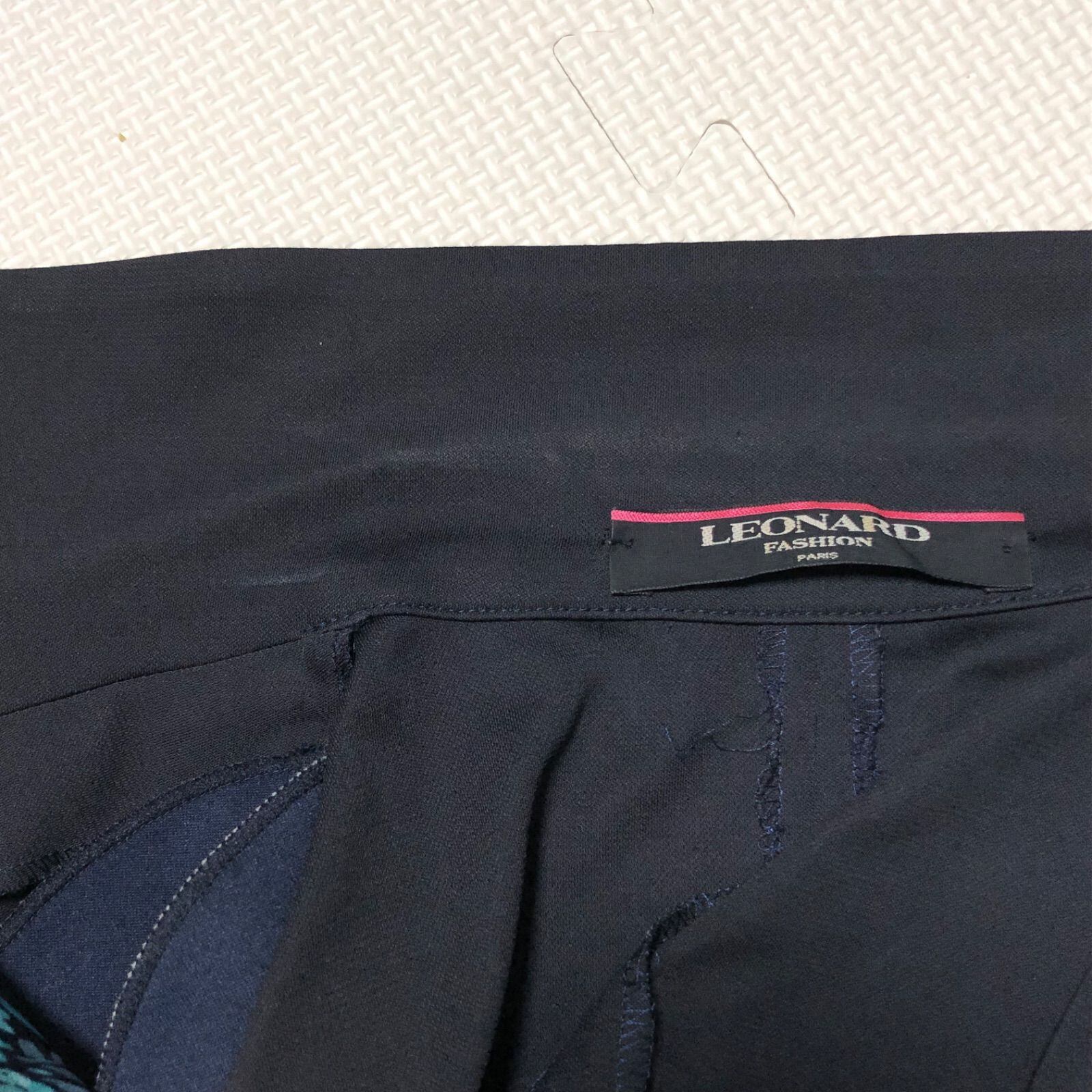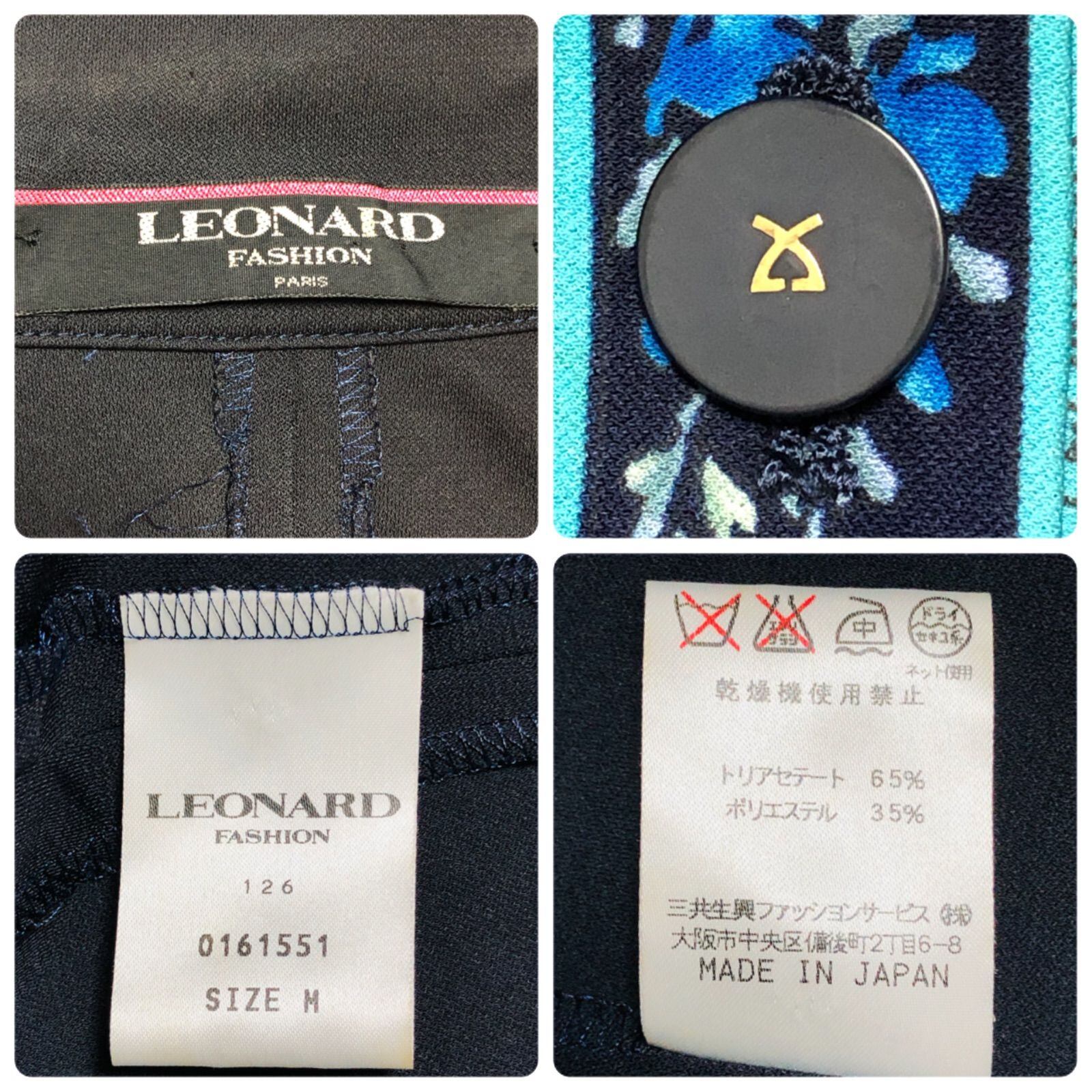 ■美品■希少■LEONARD FASHION レオナールファッション カンカン素材 花柄ジャケット ストレッチ 伸縮性あり sizeM 日本製 花柄ライン(ブルー系)×ブラック シングル3つボタン 裏地なし 肩パッド 両サイドスリット レディース