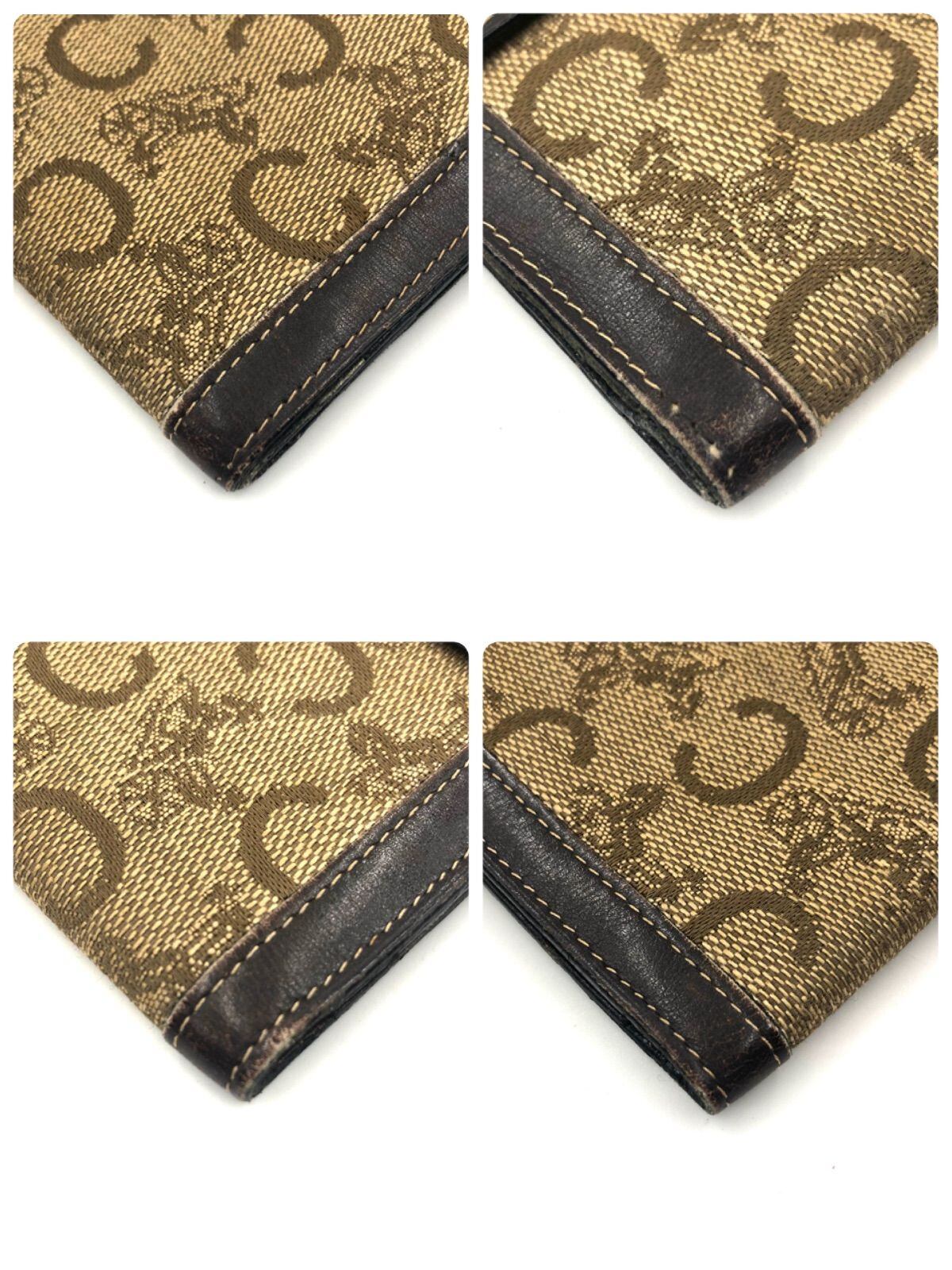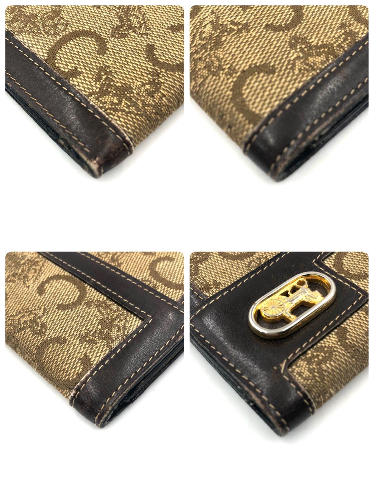 CELINE セリーヌ フィービー期 馬車金具 三ツ折り財布 Cマカダム サルキー 総柄 キャンバス×レザー ベージュ×ダークブラウン ゴールド金具 イタリア製 オールドセリーヌ レディース