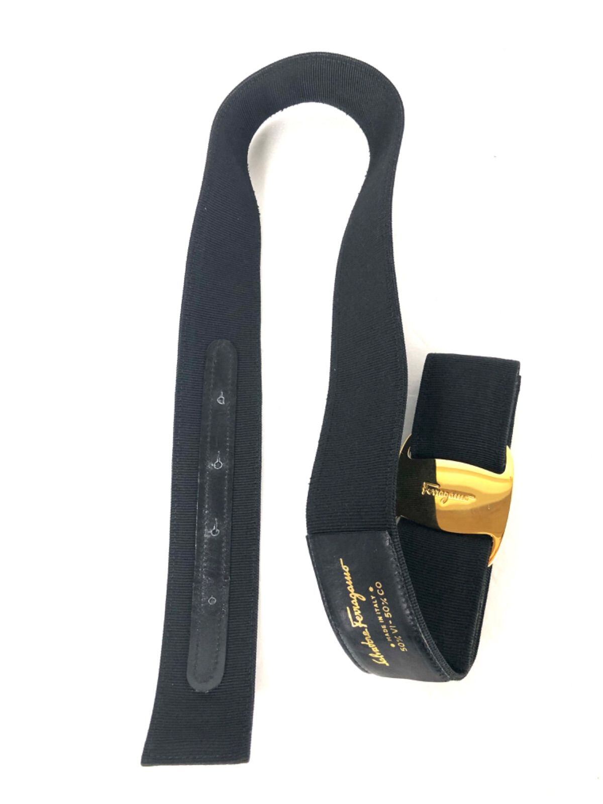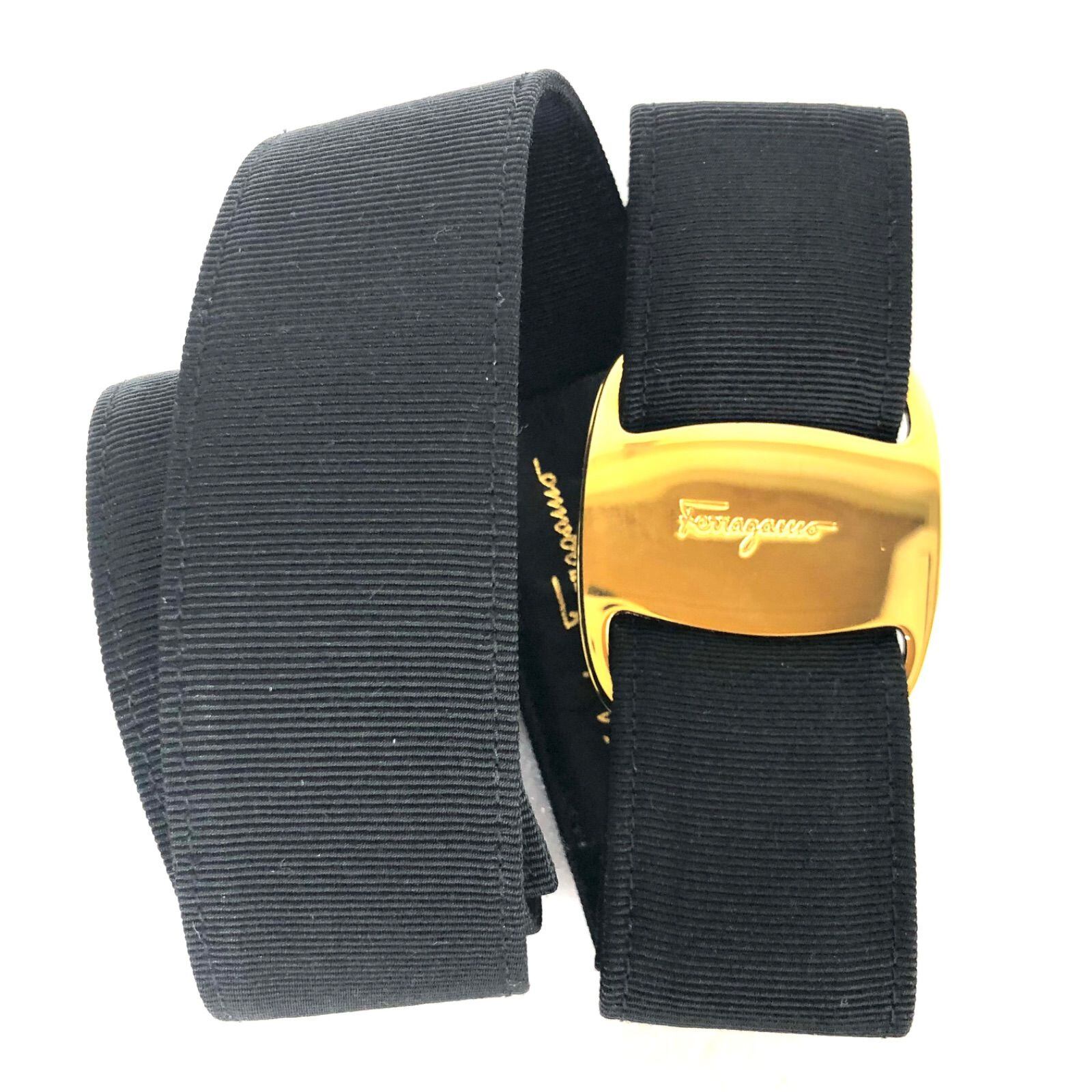 ■美品■Salvatore Ferragamo サルヴァトーレフェラガモ ヴァラリボン ベルト キャンバス×レザー ブラック ゴールド金具 イタリア製 ウエスト最大74cm レディース