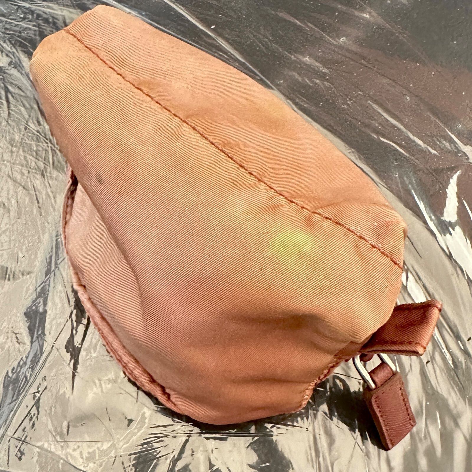 PRADA プラダ テスートナイロン ポコノ コスメポーチ ミニポーチ 三角プレート イタリア製 白タグあり オレンジブラウン系
