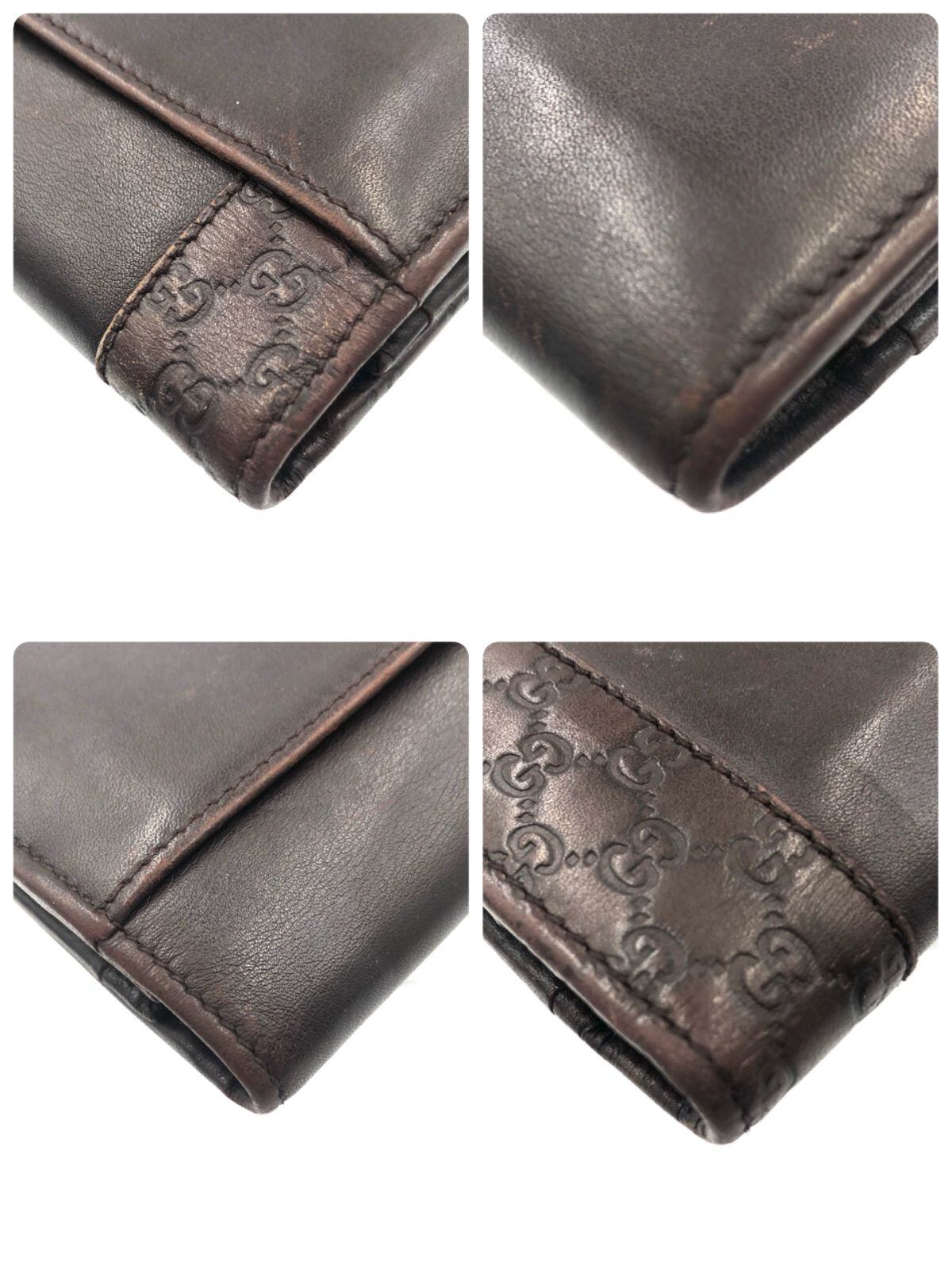 ■良品■GUCCI グッチ グッチシマ マイクロシマ 長財布 レザー 本革 ダークブラウン シルバー金具 イタリア製 刻印あり 256434・0416 メンズ ユニセックス