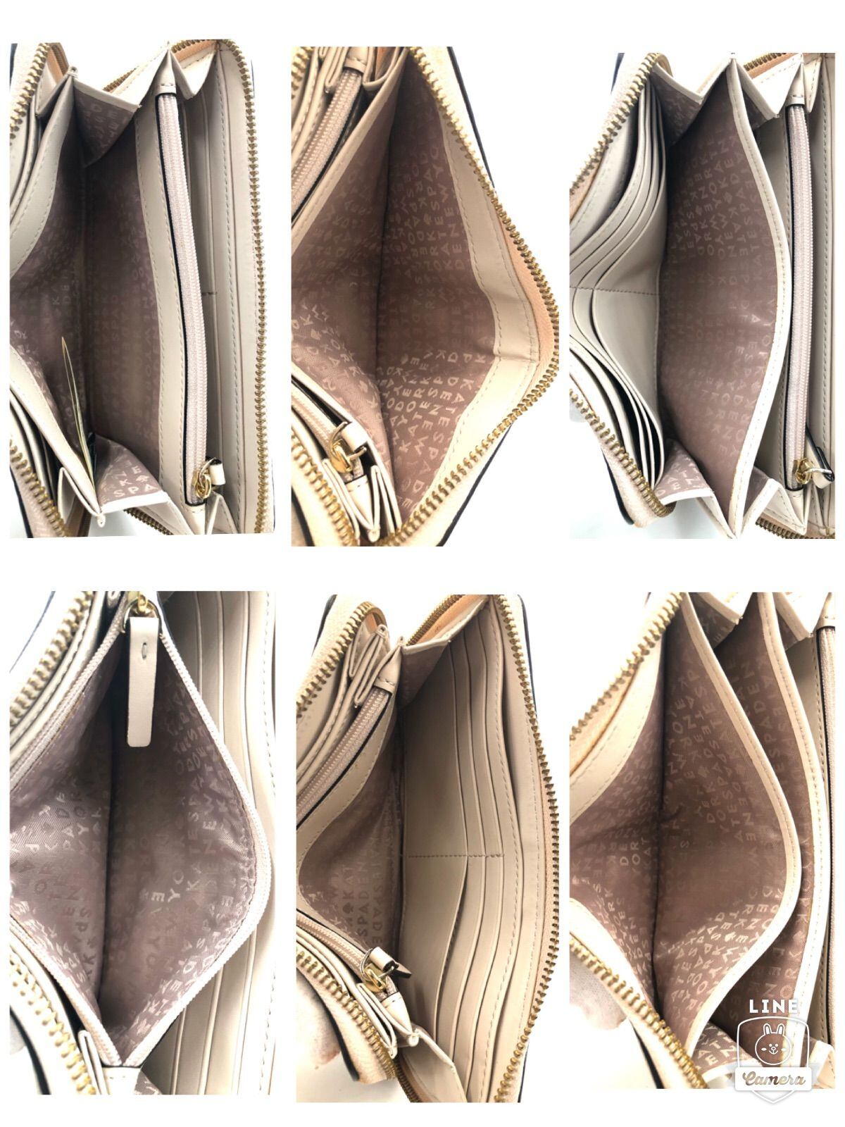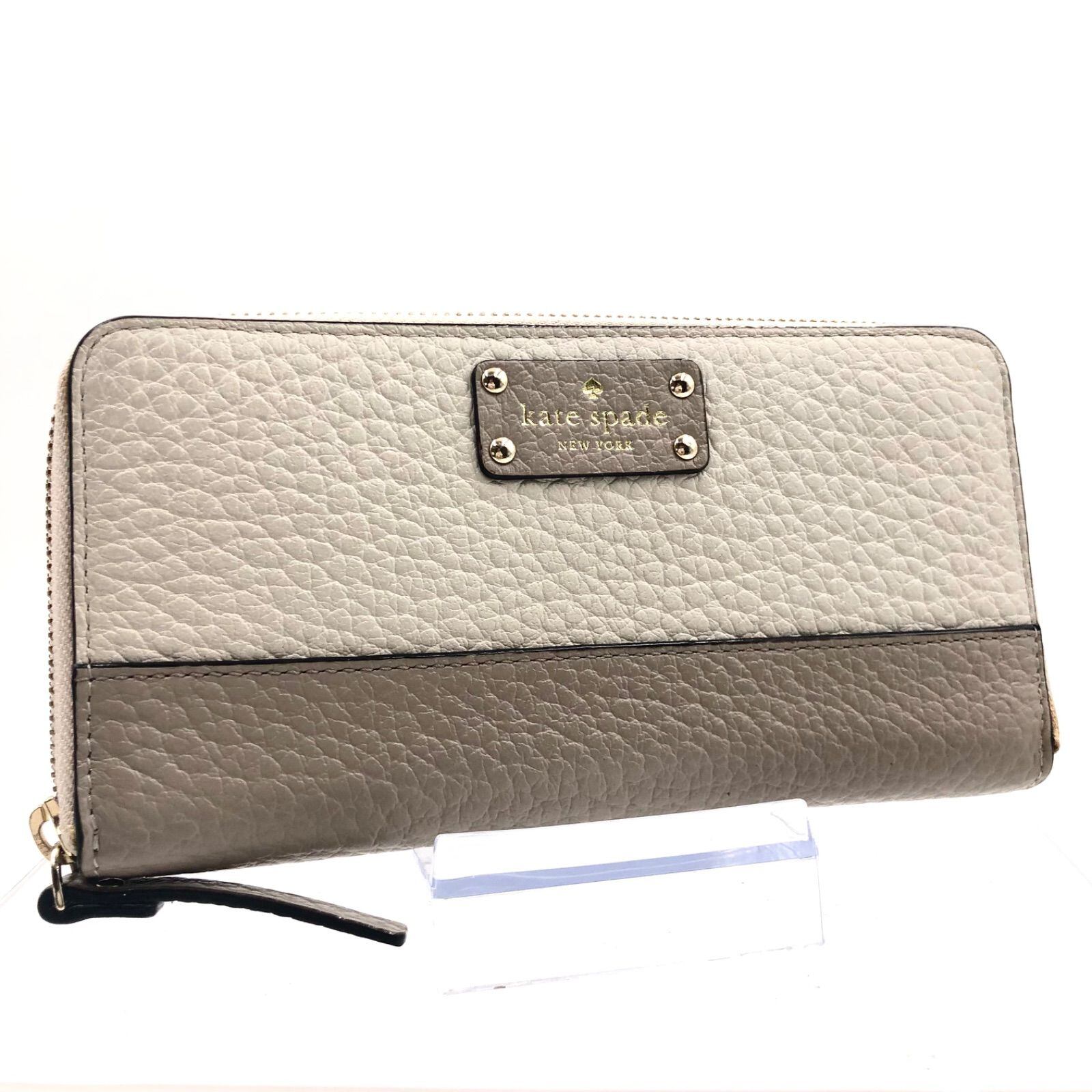 ■極美品■kate spade NEW YORK ケイトスペードニューヨーク ラウンドファスナー 長財布 レザー バイカラー ホワイト×グレー ゴールド金具