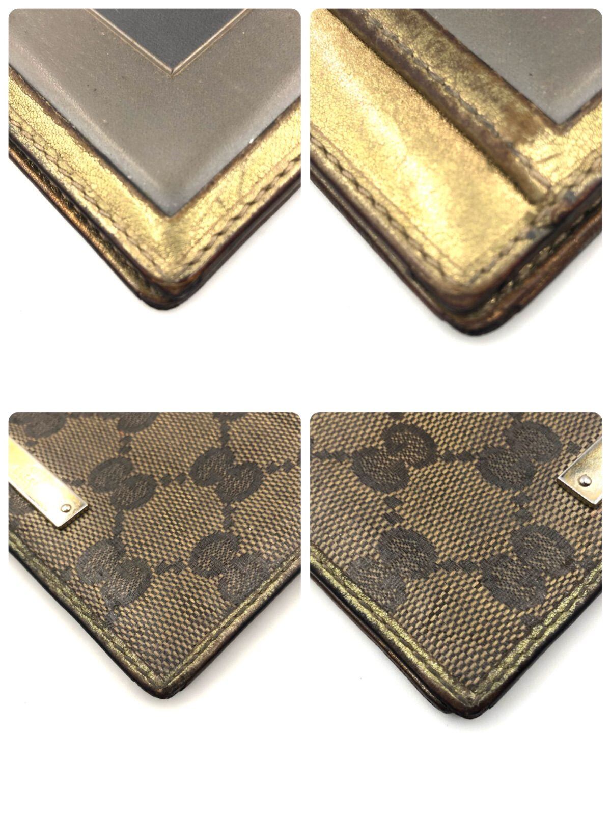 GUCCI グッチ カードケース パスケース GG柄 コーティングキャンバス×レザー 刻印あり 1127・7・2118 イタリア製 ベージュ×ゴールド