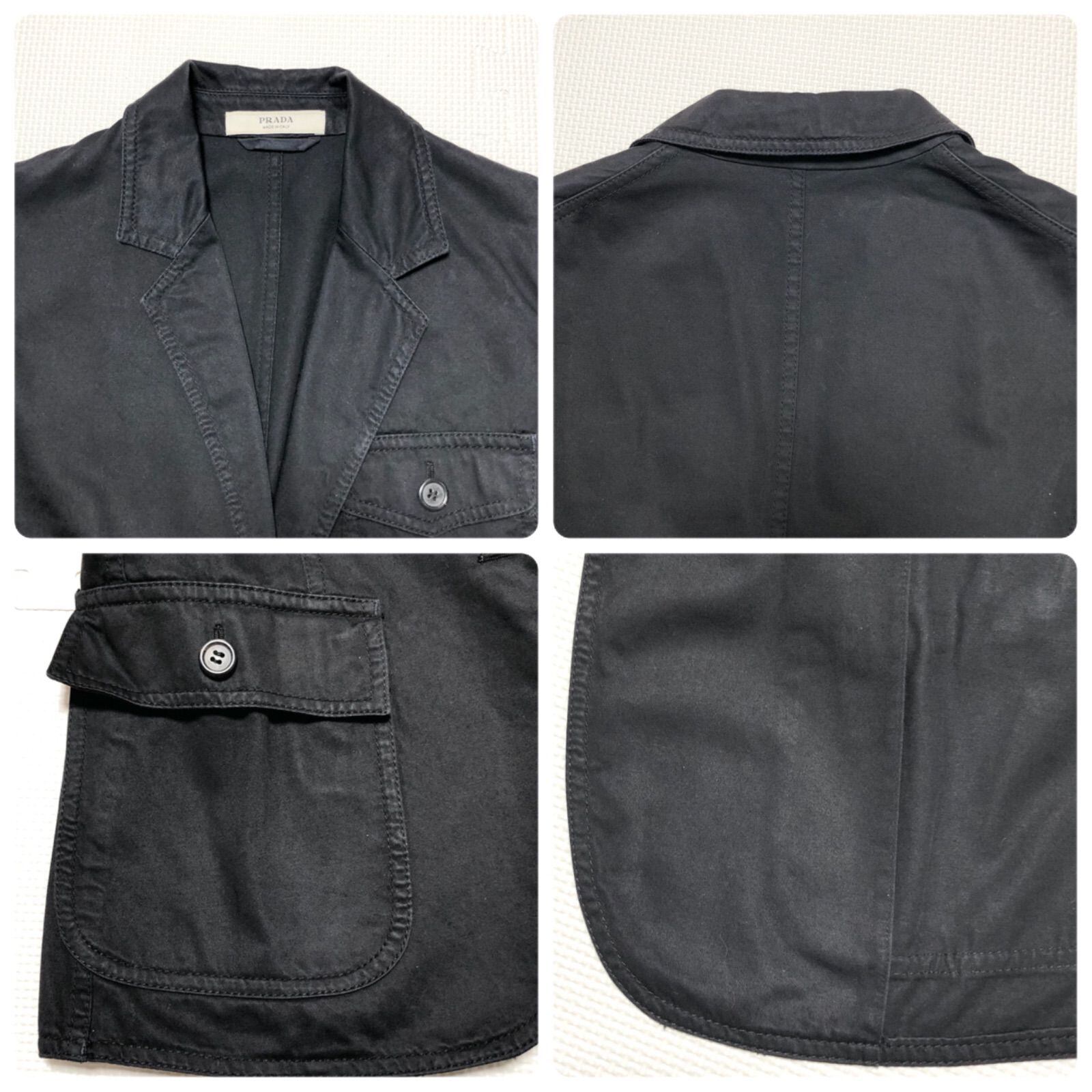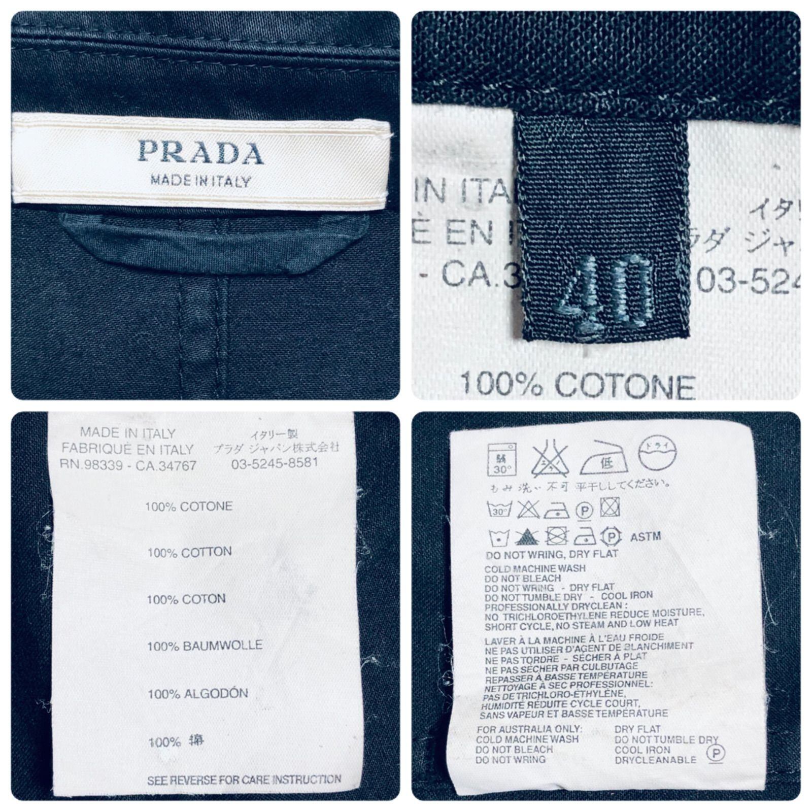 ■良品■PRADA プラダ シングルジャケット size40(L) ブラック コットン100% カジュアル ビジネス イタリア製 ベルトループ(ベルト無し) レディース