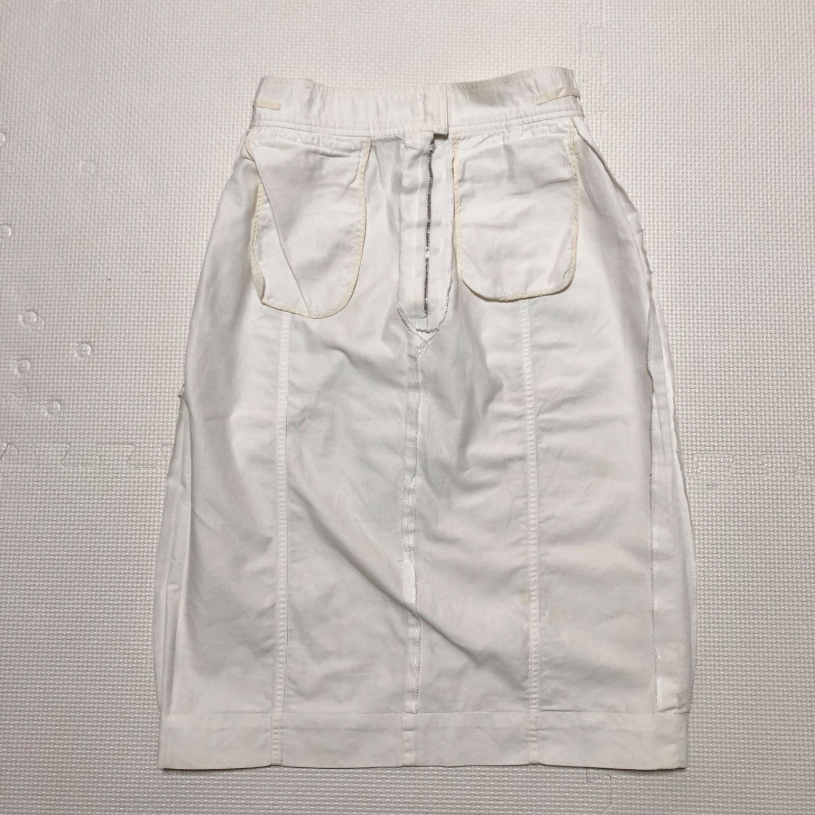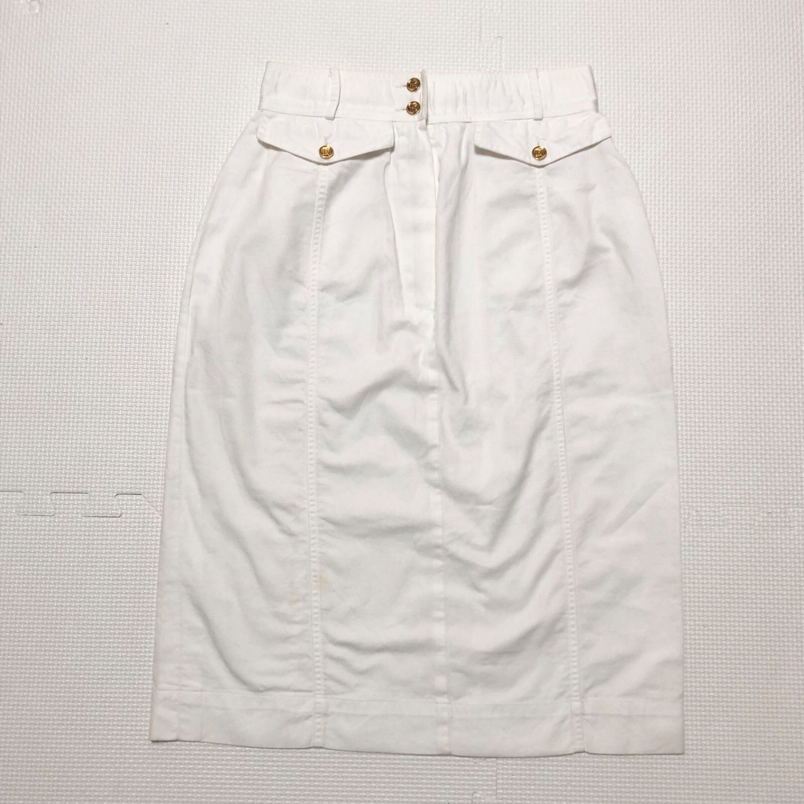 ■希少ヴィンテージ■CHANEL シャネル タイトスカート ひざ丈 マトラッセバッグ風金ボタン size38(M) ホワイト コットン100% 裏地無し タグあり フランス製 D-TK-9064 レディース