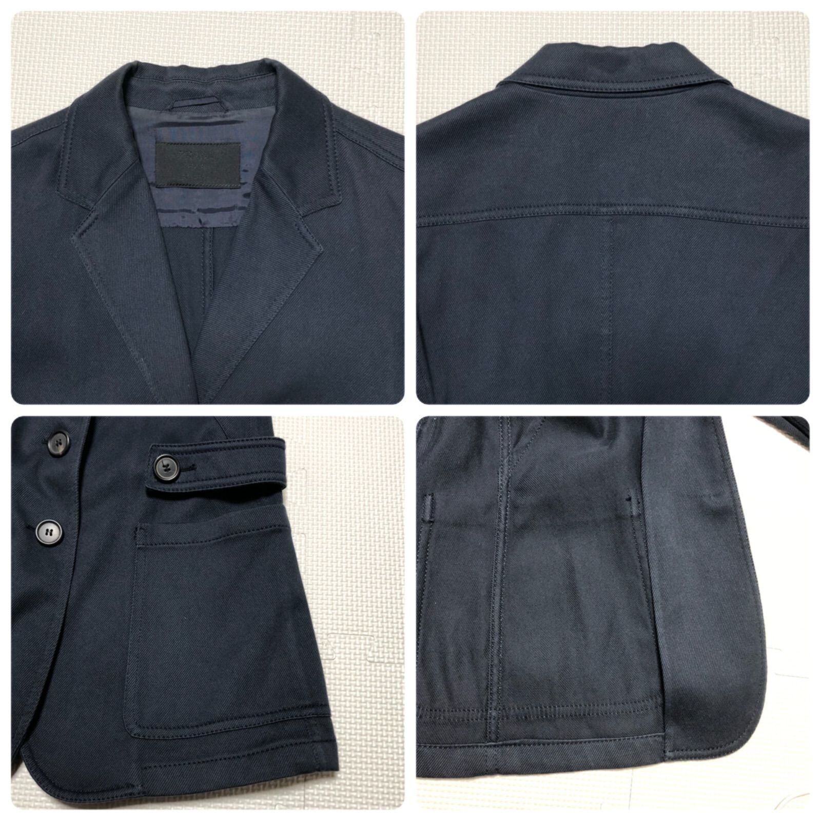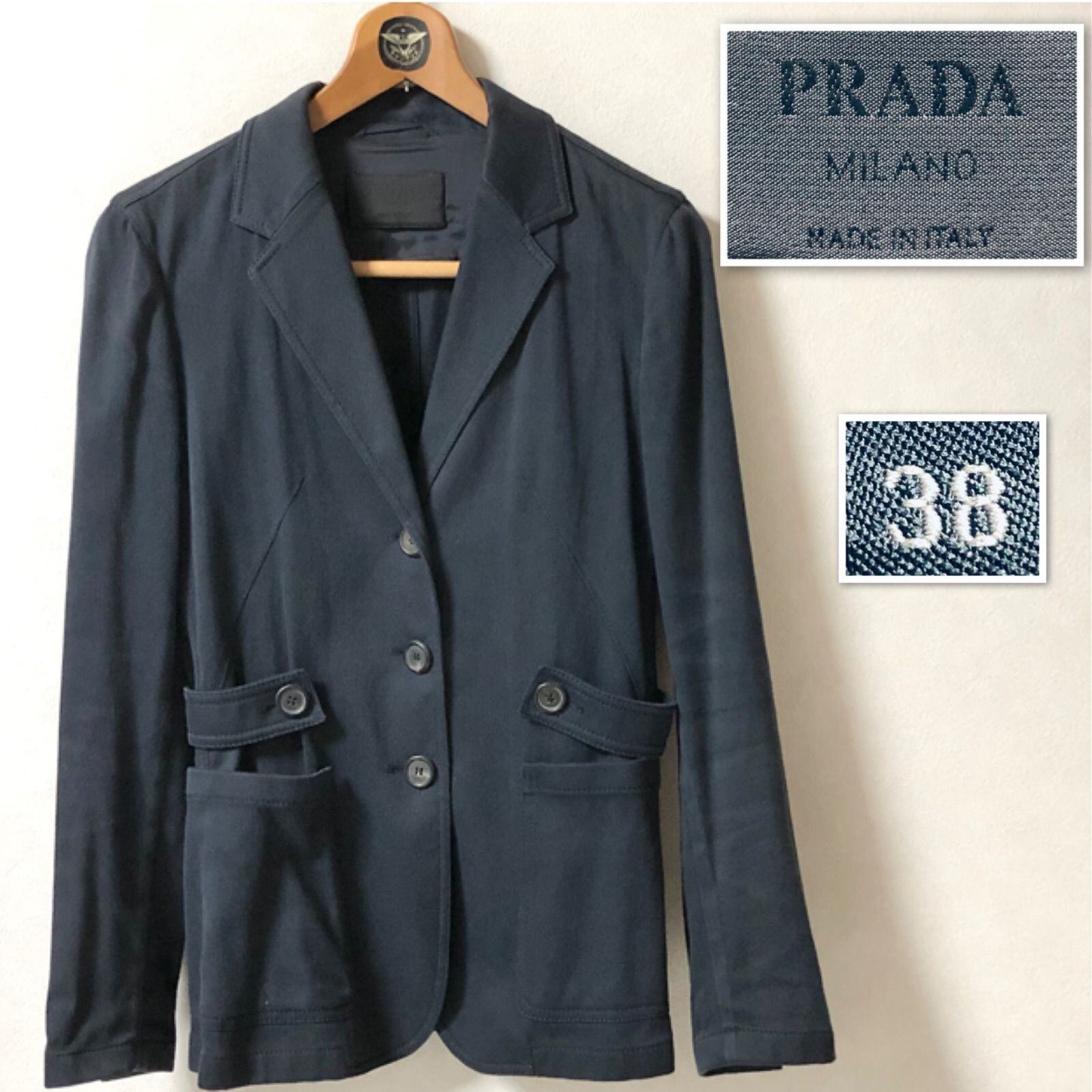 ■美品■PRADA プラダ シングルジャケット size38(M) ベルトデザイン ダークネイビー 3つボタン 裏地無し タグあり イタリア製 コットン レディース