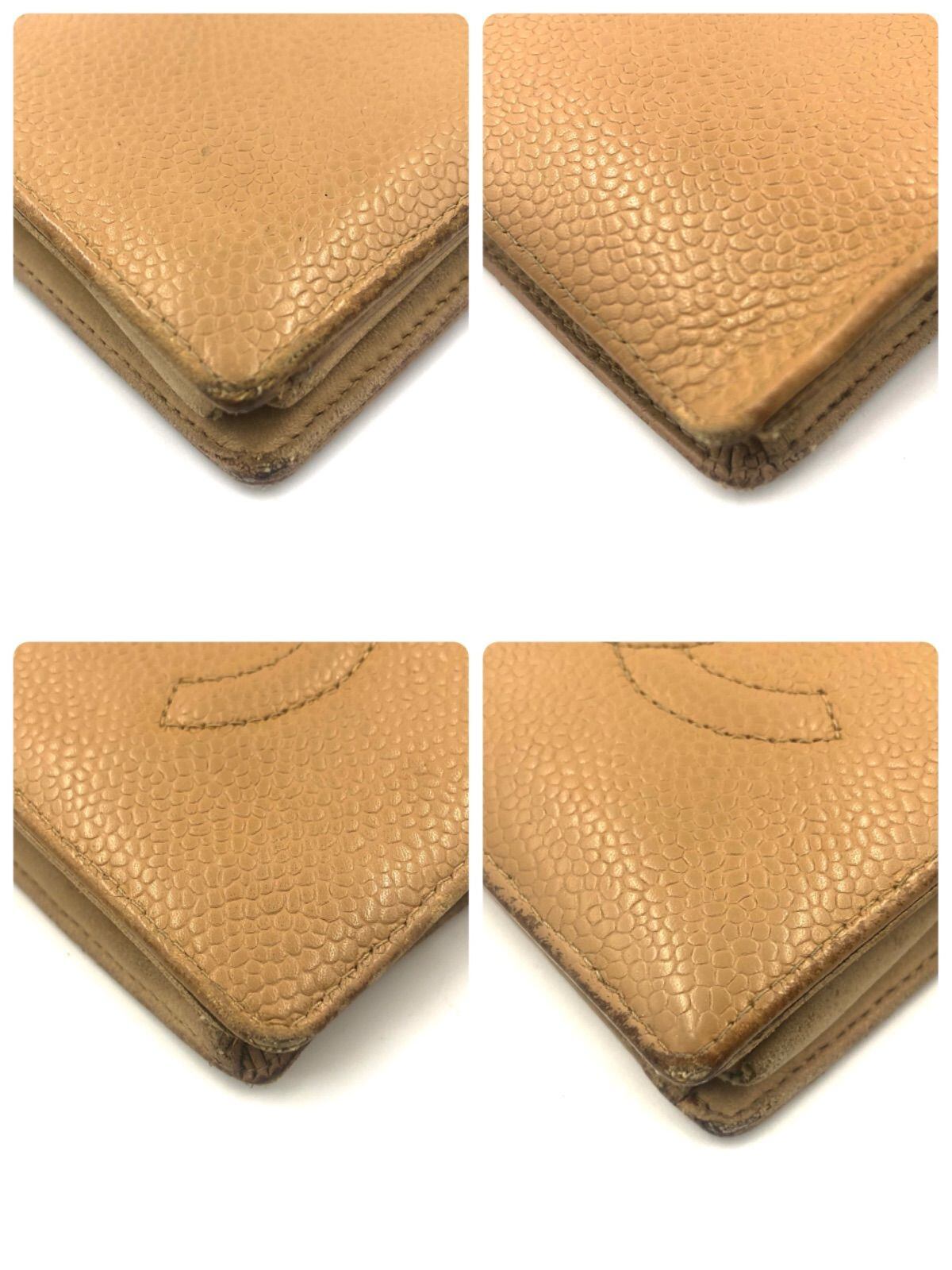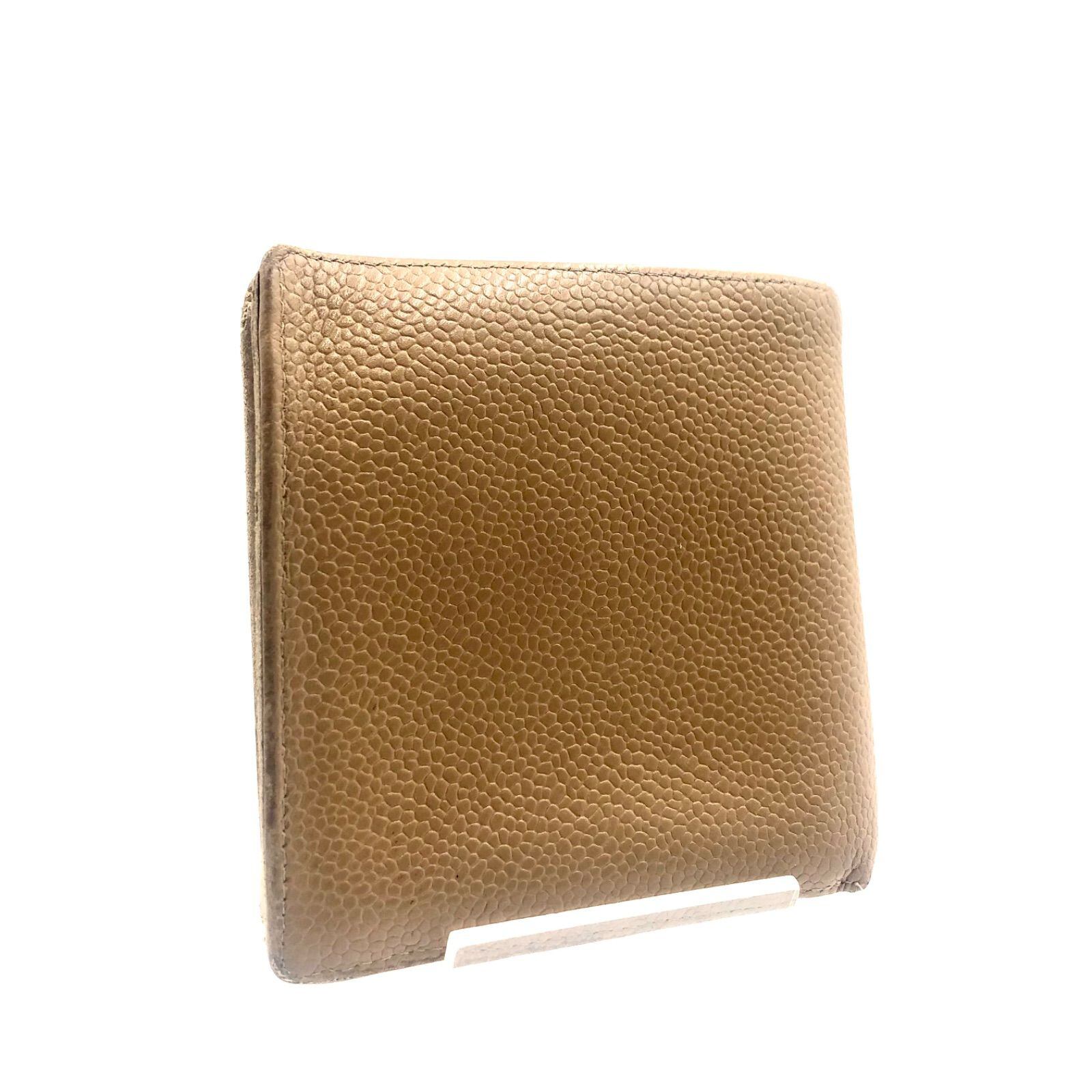 ■鑑定済み■CHANEL シャネル キャビアスキン 二つ折り財布 ココマーク レザー 本革 キャメルブラウン フランス製 シリアルシール剥がれ(跡あり) ギャランティーカードあり レディース