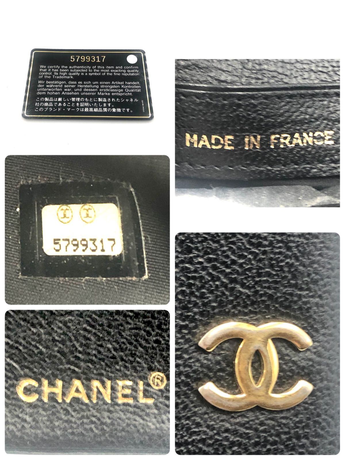 ■外観美品■CHANEL シャネル ココマーク 二つ折り財布 レザー ブラック ゴールド金具 シリアルシールあり ギャランティーカードあり 5番代 フランス製