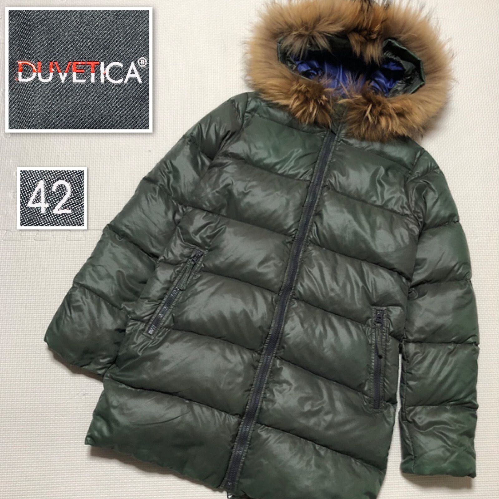 DUVETICA デュベティカ Kappa カッパ ダウンコート ロングダウン ダウン90% フーディ ラクーンファー size42 クロアチア製 ダークグリーン系 レディース