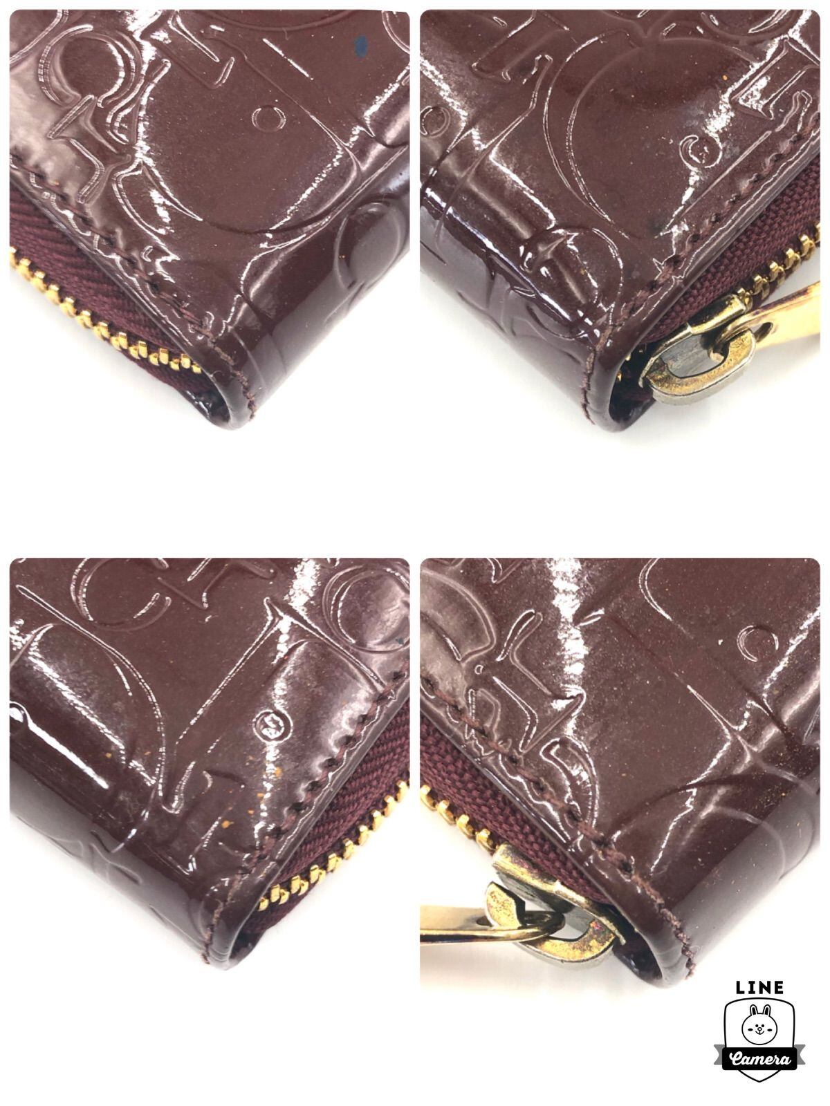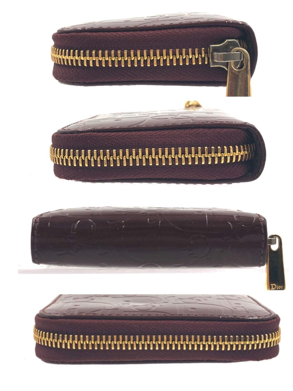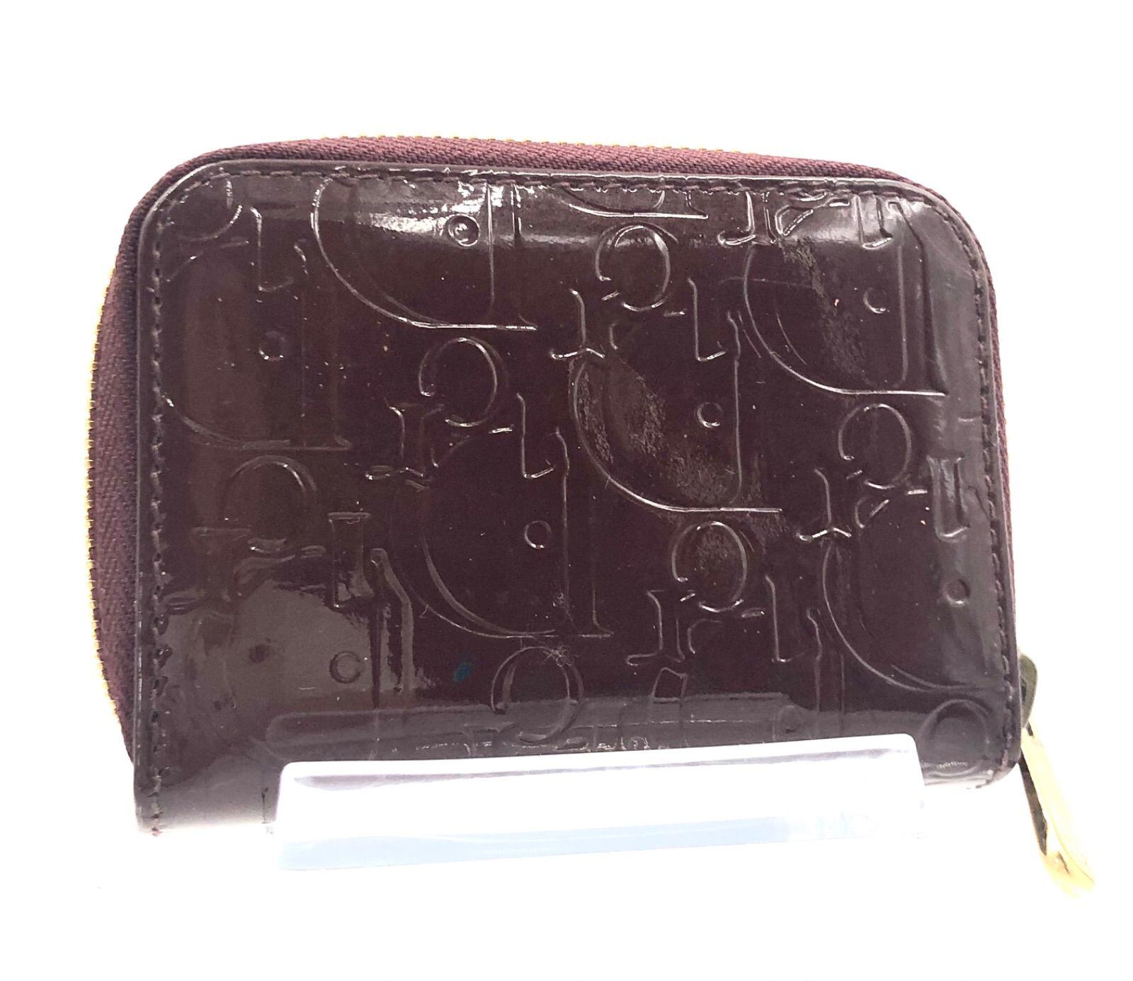 ■良品■希少■鑑定済み■Christian Dior クリスチャンディオール トロッター ロゴ型押し コインケース 小銭入れ エナメル パテントレザー コンパクト ミニ ブラウン系×パープル系 ゴールド金具 スペイン製 刻印あり