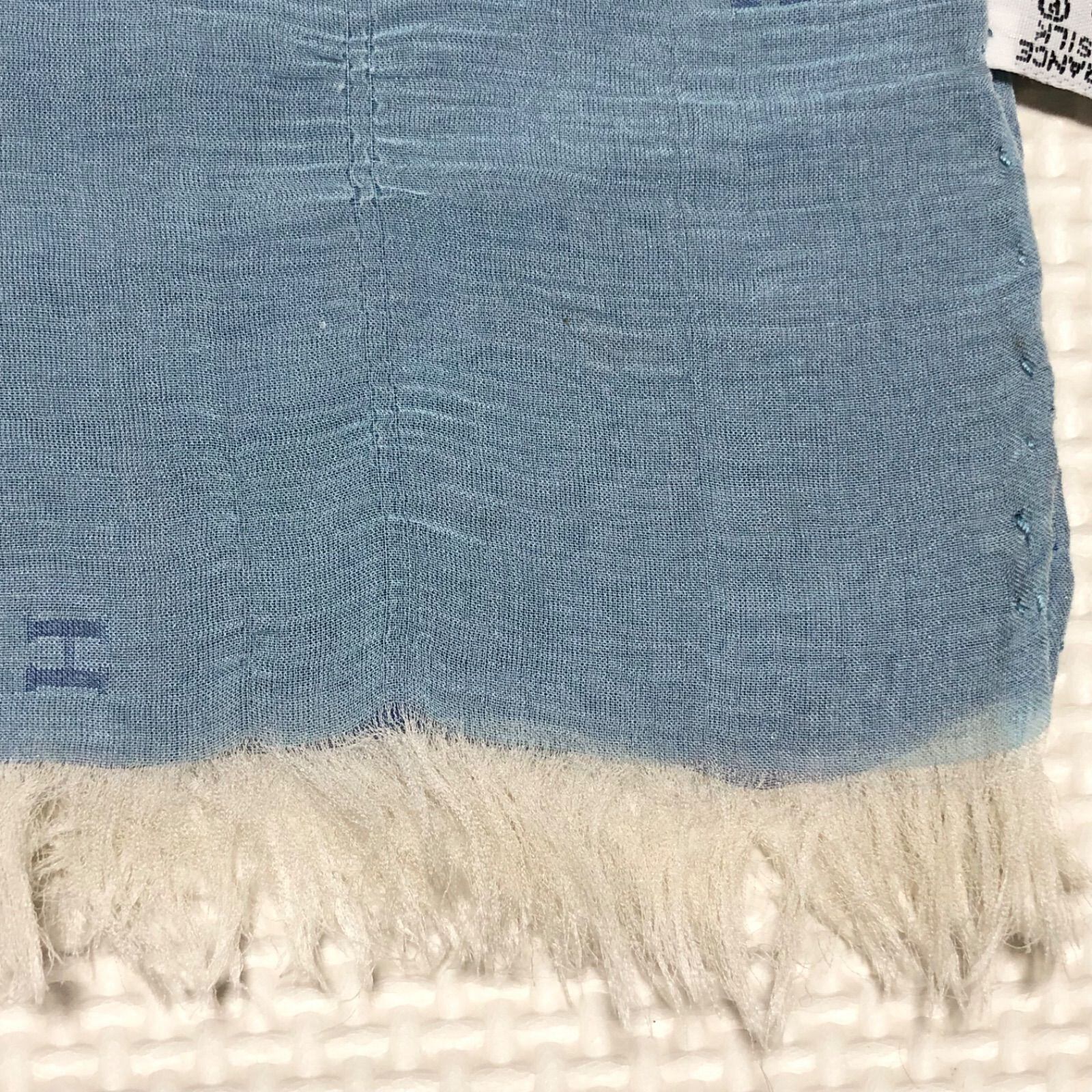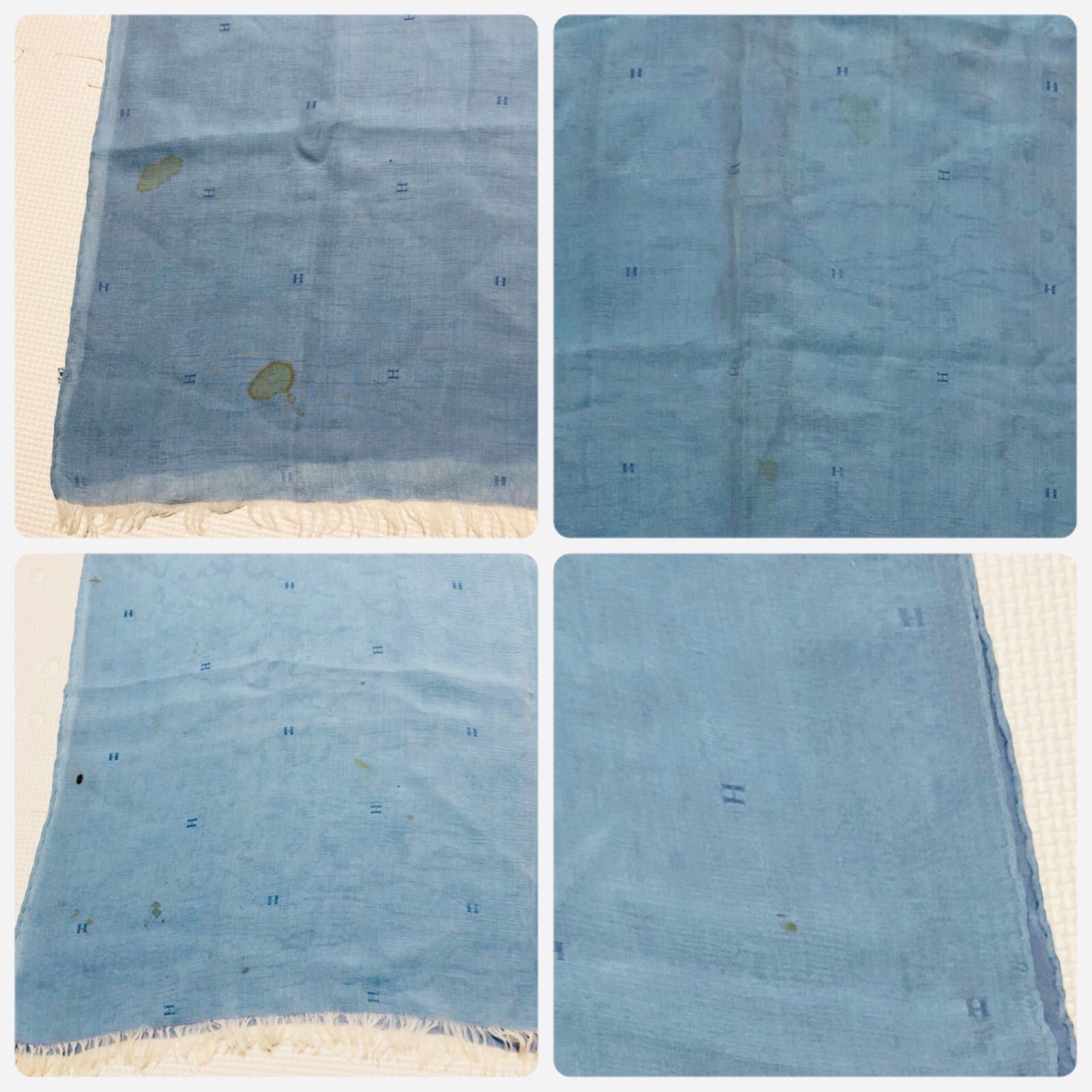 HERMES エルメス 大判ストール マフラー H柄 シルク100% フランス製 ブルー系 166cm×69cm レディース