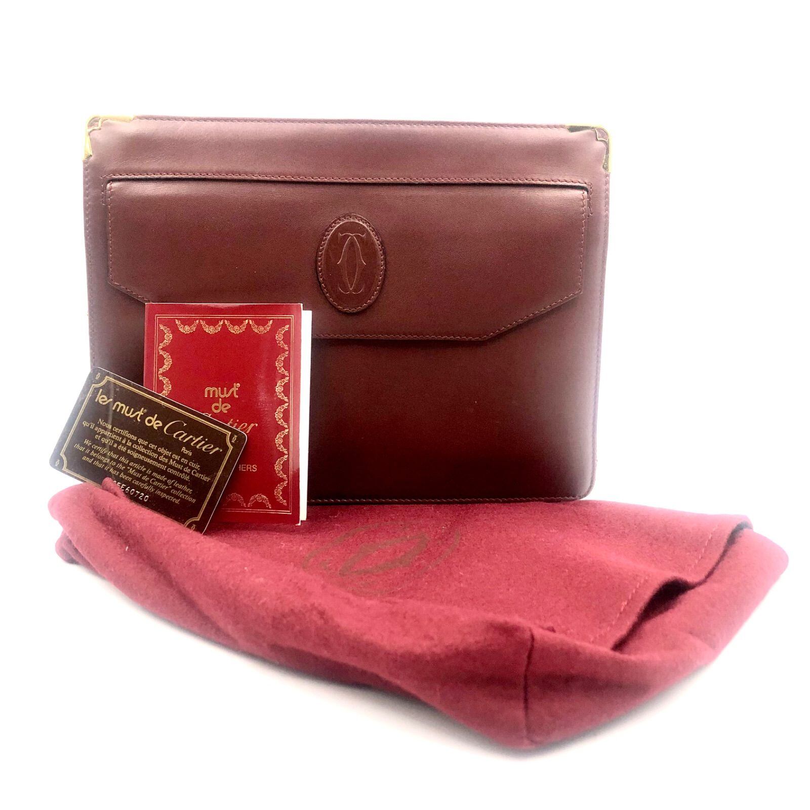■外観美品■Cartier カルティエ must de Cartier マストドゥカルティエ クラッチバッグ パーティーバッグ レザー 本革 ボルドー ゴールド金具 ギャランティーカード、紙冊子、保存袋付き レディース