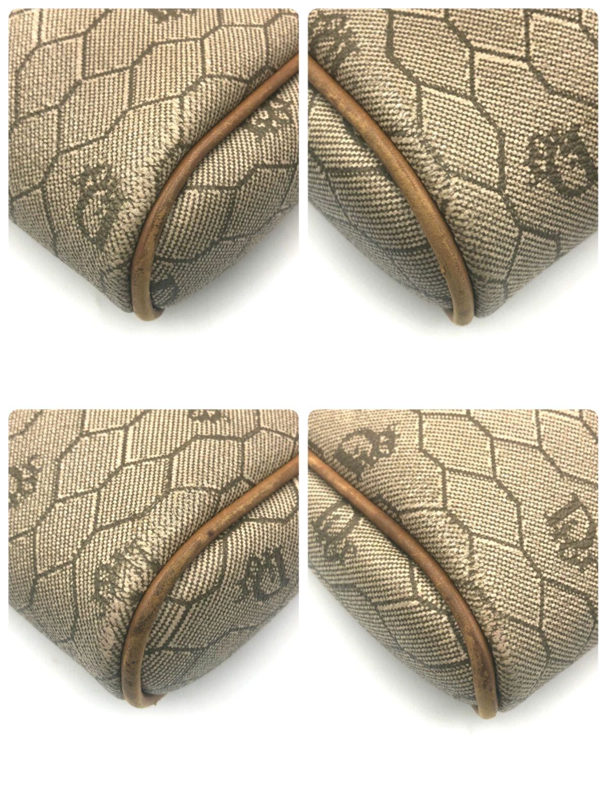 ■美品■Christian Dior クリスチャンディオール ハニカム柄 クラッチバッグ パーティーバッグ PVC×レザー ベージュ×ブラウン フランス製 ロゴ総柄 ロゴ金具 レディース
