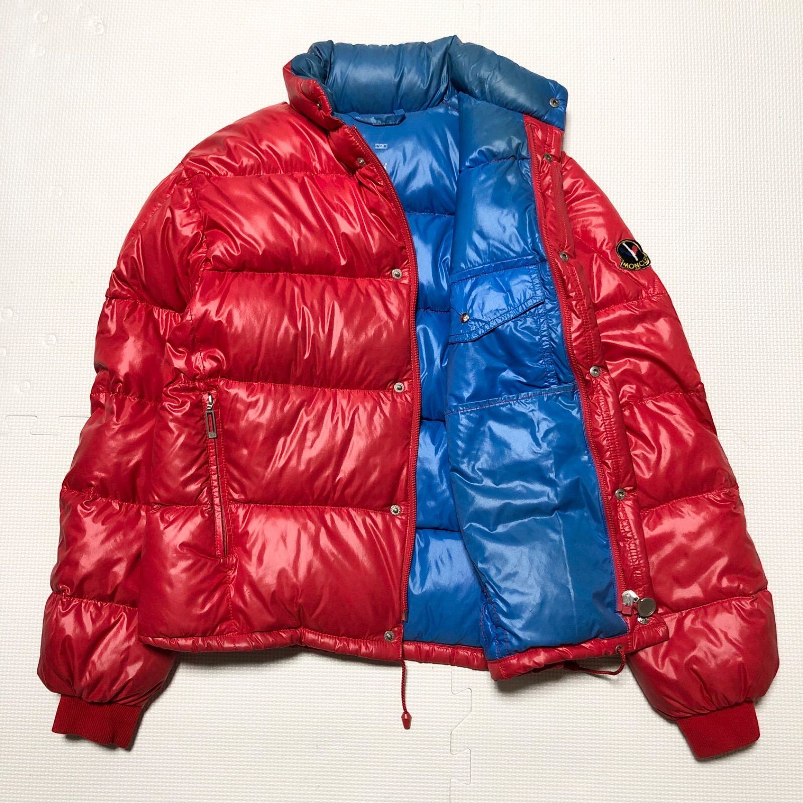 ■希少アシックス期■MONCLER モンクレール ダウンジャケット 羽毛100% サイズ 身長160cm 胸囲86cm ロゴワッペン レッド レディース フランス製 秋冬