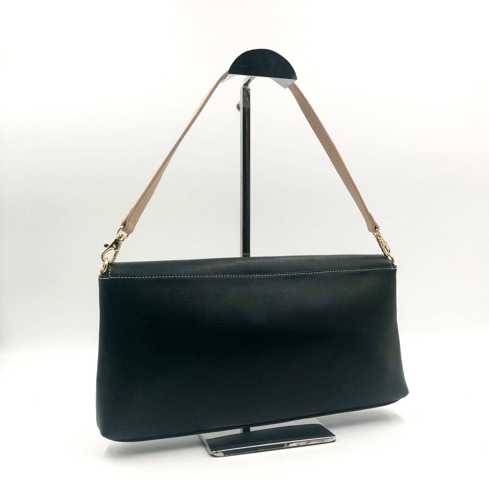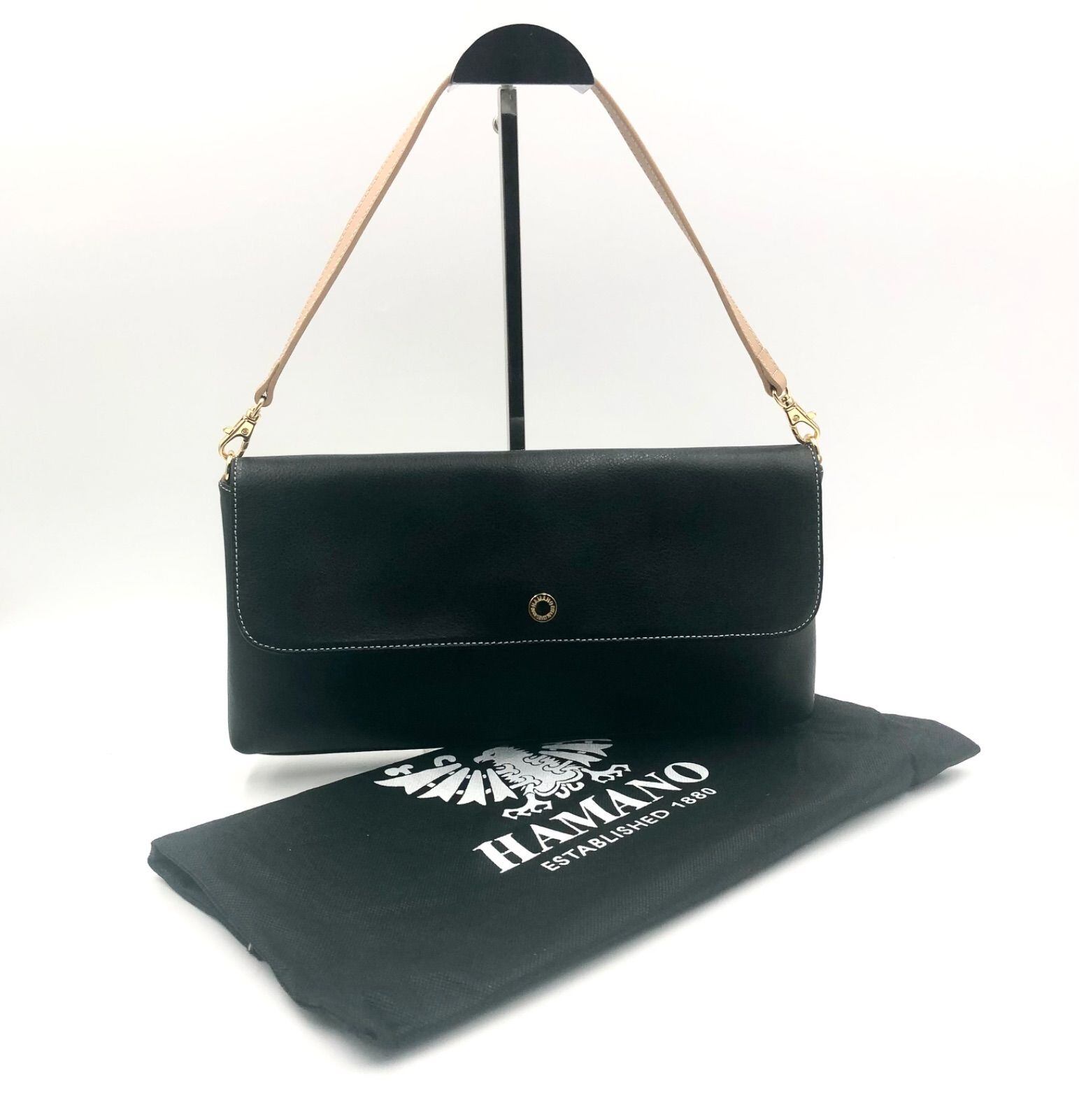 ■未使用同然■HAMANO ハマノ 濱野皮革工藝 2way ショルダーバッグ パーティーバッグ クラッチ レザー 本革 ブラック ゴールド金具 レディース 保存袋付き