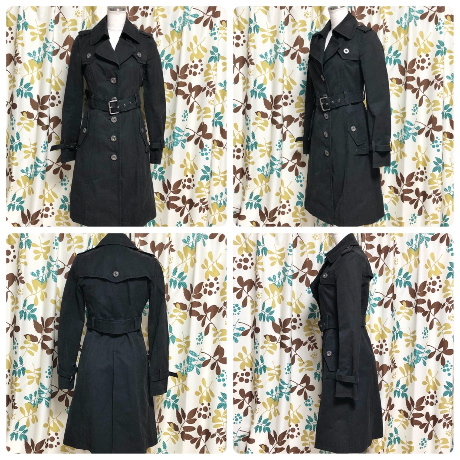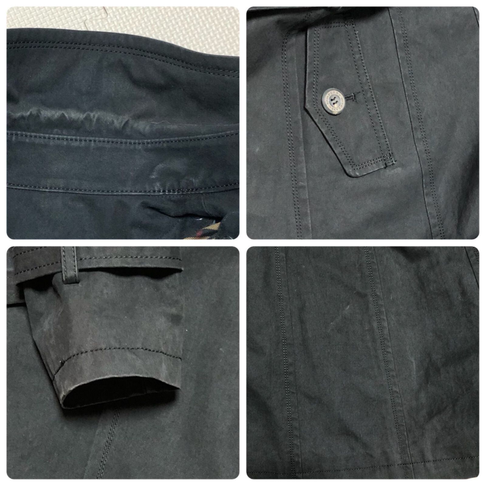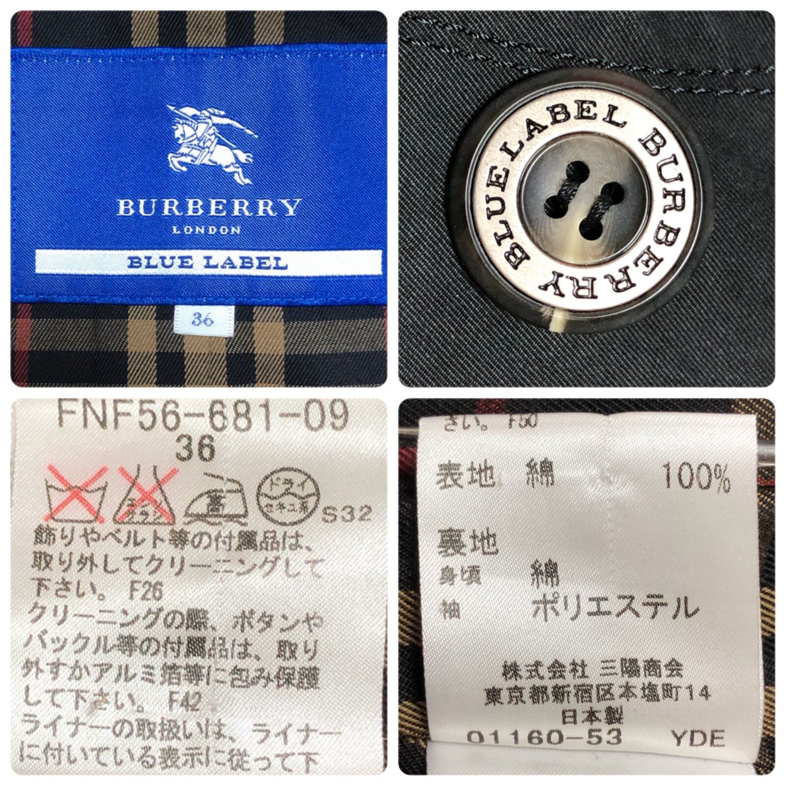 ■美品■BURBERRY BLUE LABEL バーバリーブルーレーベル ライナー付きトレンチコート シングルロングコート ブラック 裏地フルノバチェック size36 (サイズS相当) 三陽商会 日本製 ロゴボタン ベルト付き 本体コットン ライナーウール