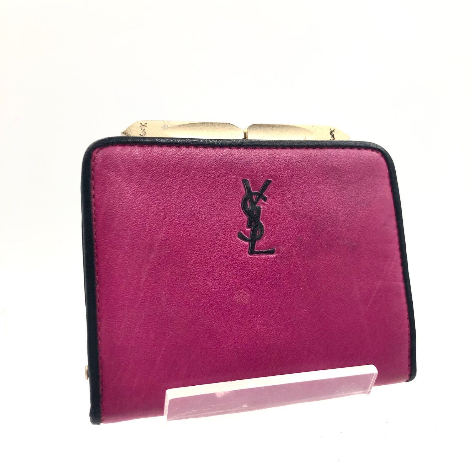 Yves saint Laurent イヴサンローラン がま口コインケース 小銭入れ YSLロゴエンボス 型押し レザー 本革 ピンク×ブラック ゴールド金具 ヴィンテージ
