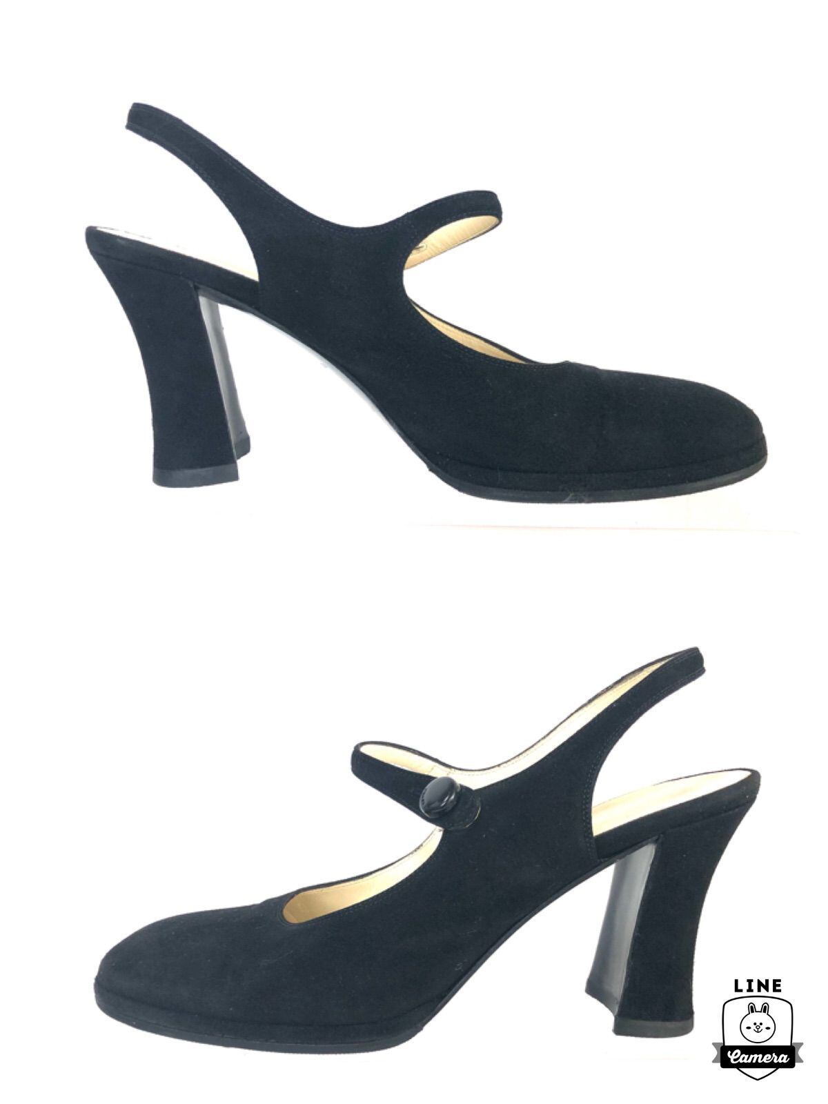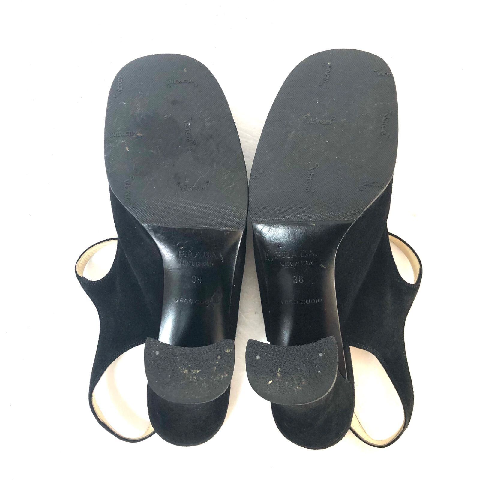 ■美品■PRADA プラダ オープンバックパンプス ヒール サンダル スエードレザー ブラック サイズ38(24cm程度) イタリア製