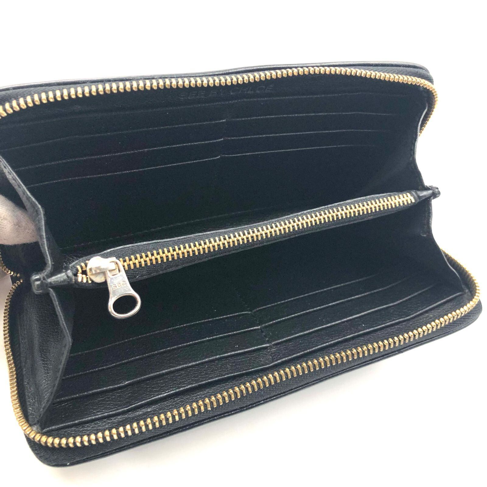 ■極美品■SEEBY CHLOE シーバイクロエ ロゴ ラウンドファスナー 長財布 レザー 本革 ブラック ゴールド金具 刻印あり レディース
