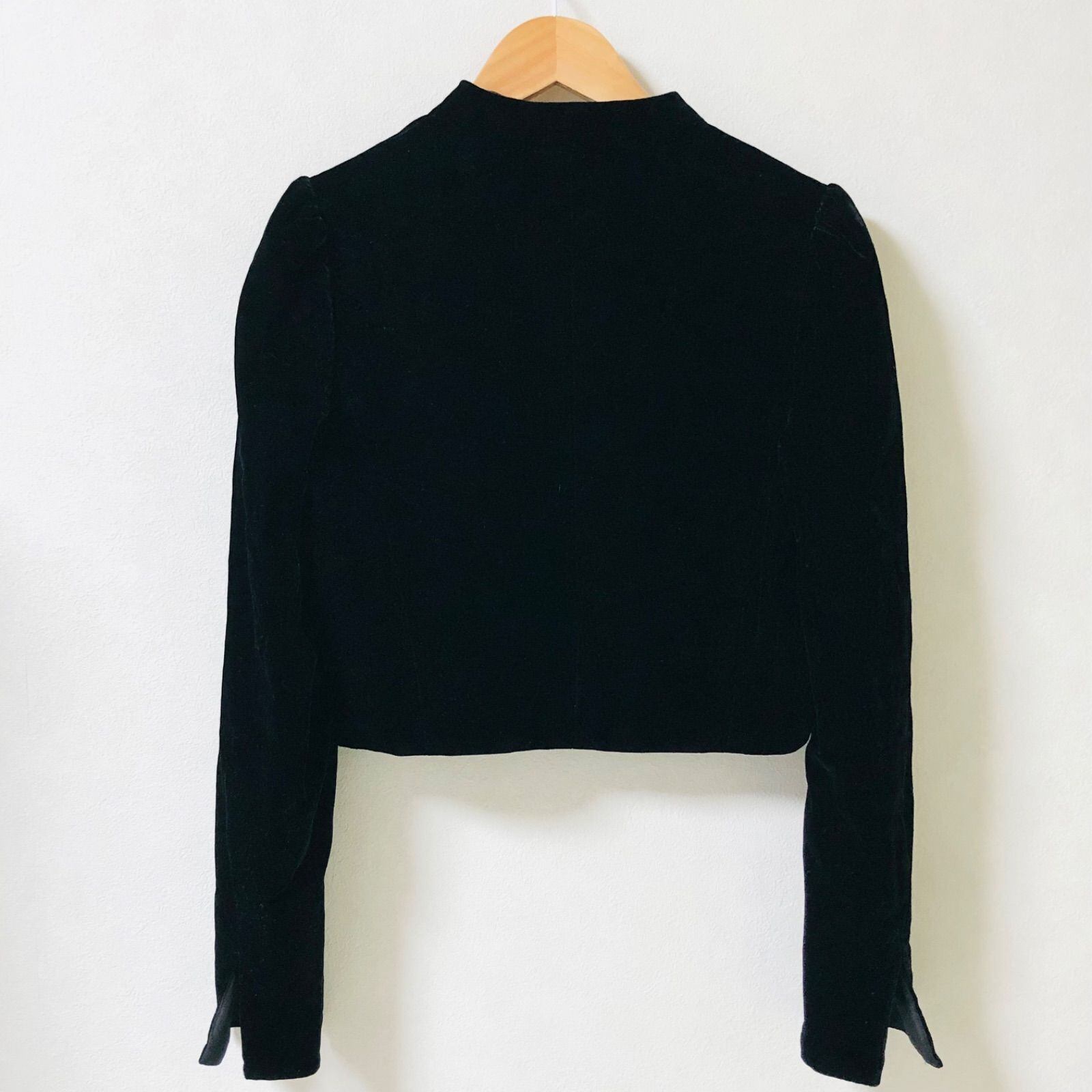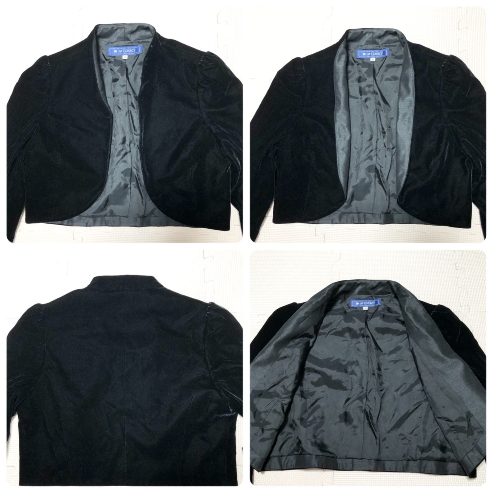 ■極上美品■M’S GRACY エムズグレイシー ベロア クロップド丈ジャケット ノーカラー size38(サイズM相当) 日本製 ブラック レディース