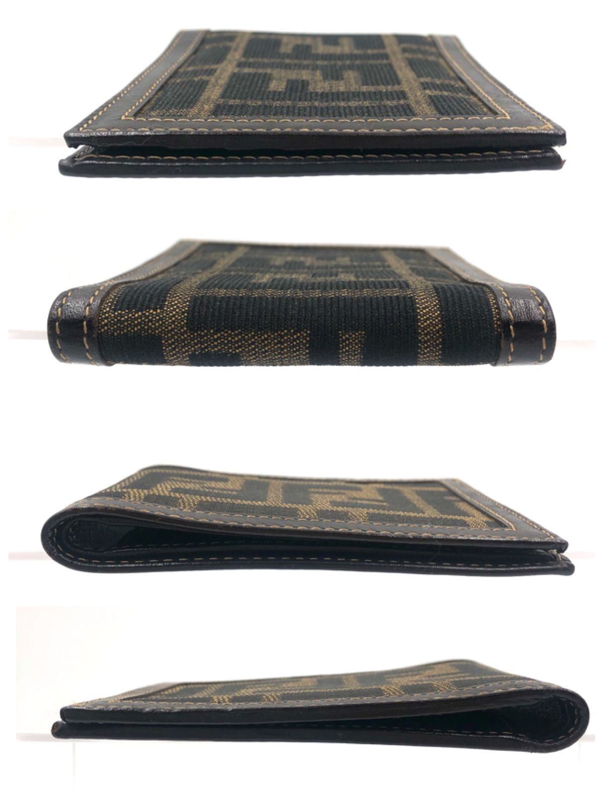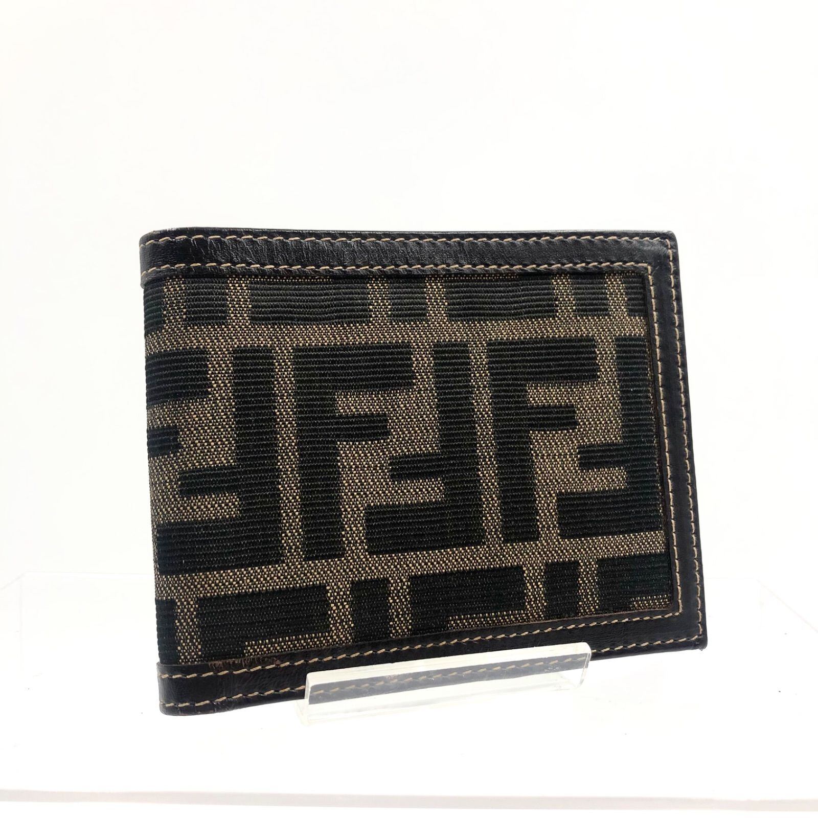 ■極上美品■FENDI フェンディ ズッカ 二つ折り財布 ミニ財布 キャンバス×レザー イタリア製 刻印あり ブラウン×ブラック