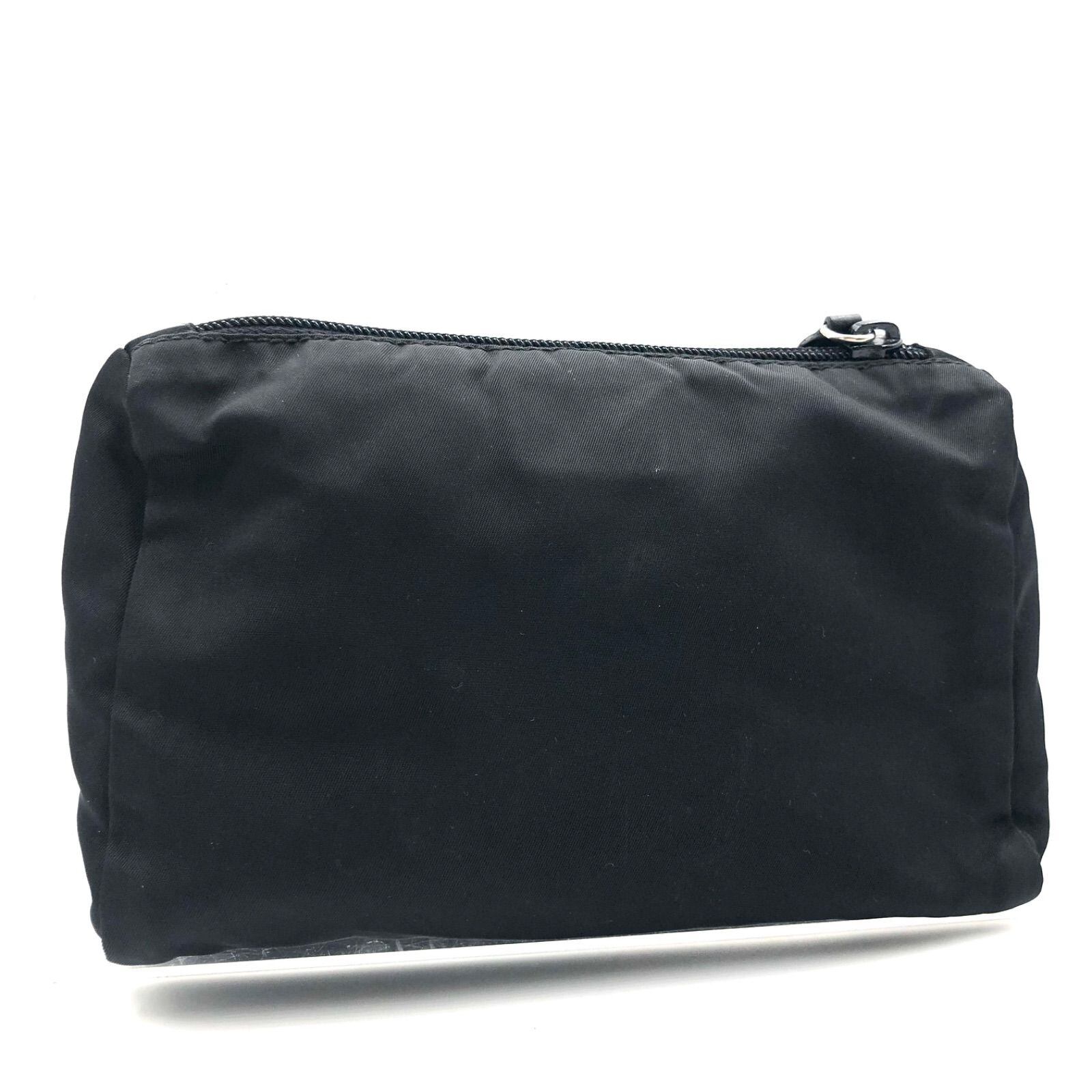 ■美品■PRADA プラダ テスートナイロン ポコノ コスメポーチ イタリア製 ブラック シルバー金具 白タグ ギャランティーカードあり ART.MV175 MATERIALE.VELA