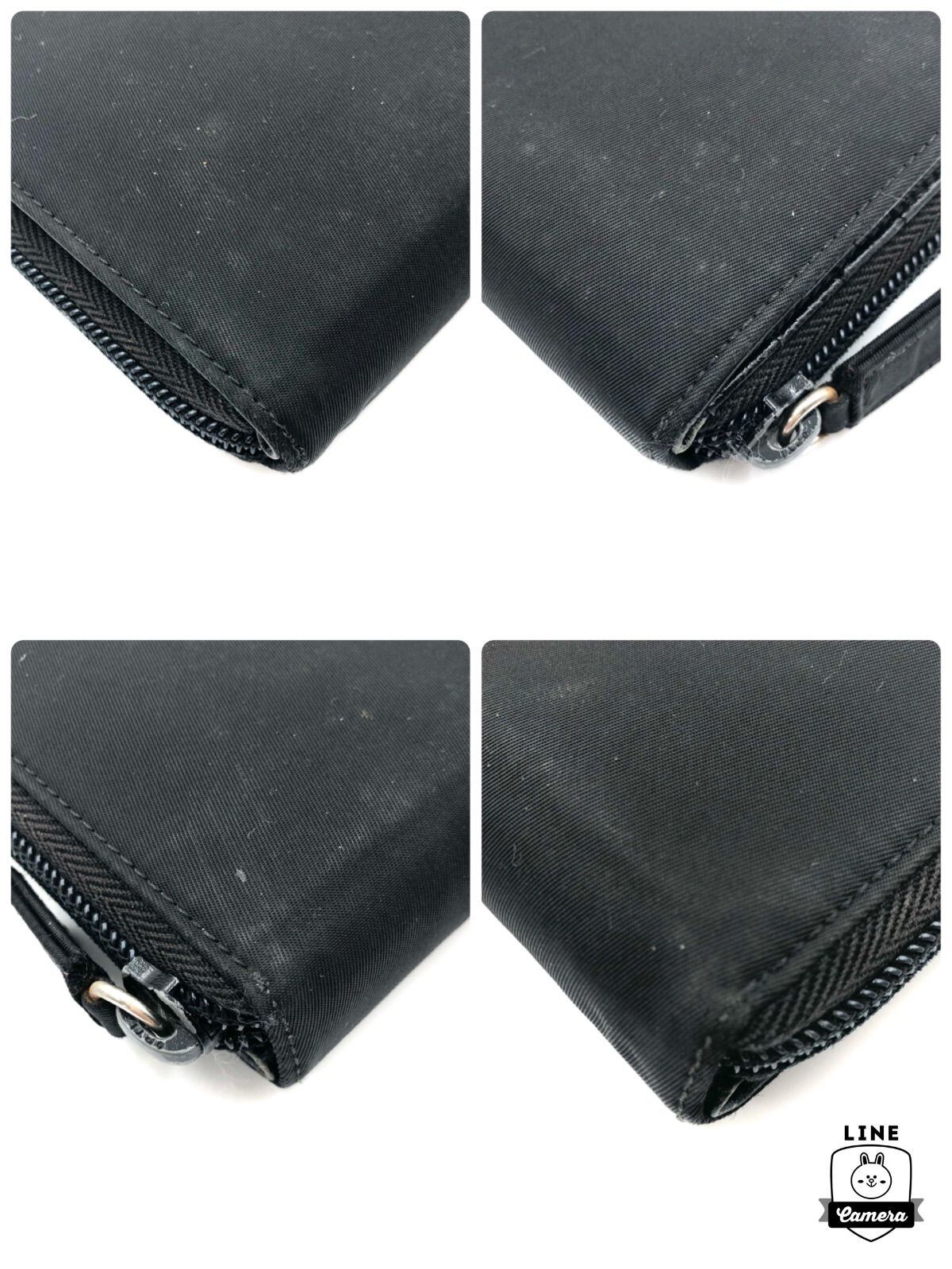 ■良品■PRADA プラダ テスートナイロン ポコノ 三角プレート 二つ折り財布 ジップアラウンド ブラック シルバー金具 イタリア製 ナイロン×レザー