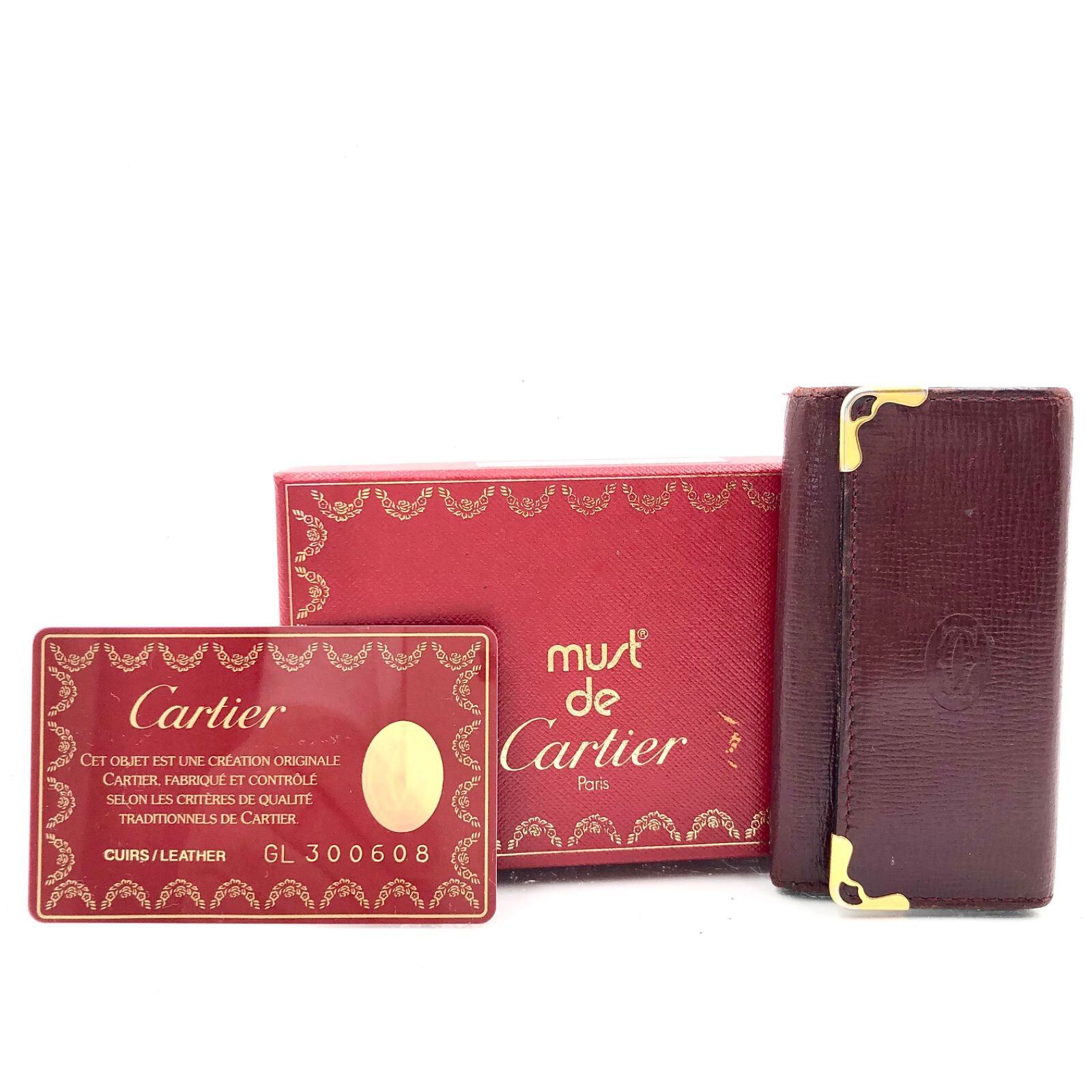 Cartier カルティエ must de Cartier マストドゥカルティエ 4連キーケース レザー 本革 ボルドー ゴールド金具 ギャランティーカードあり 箱付き