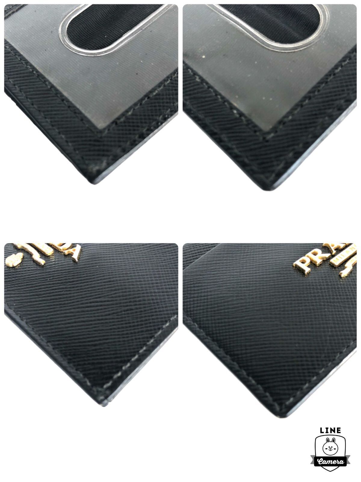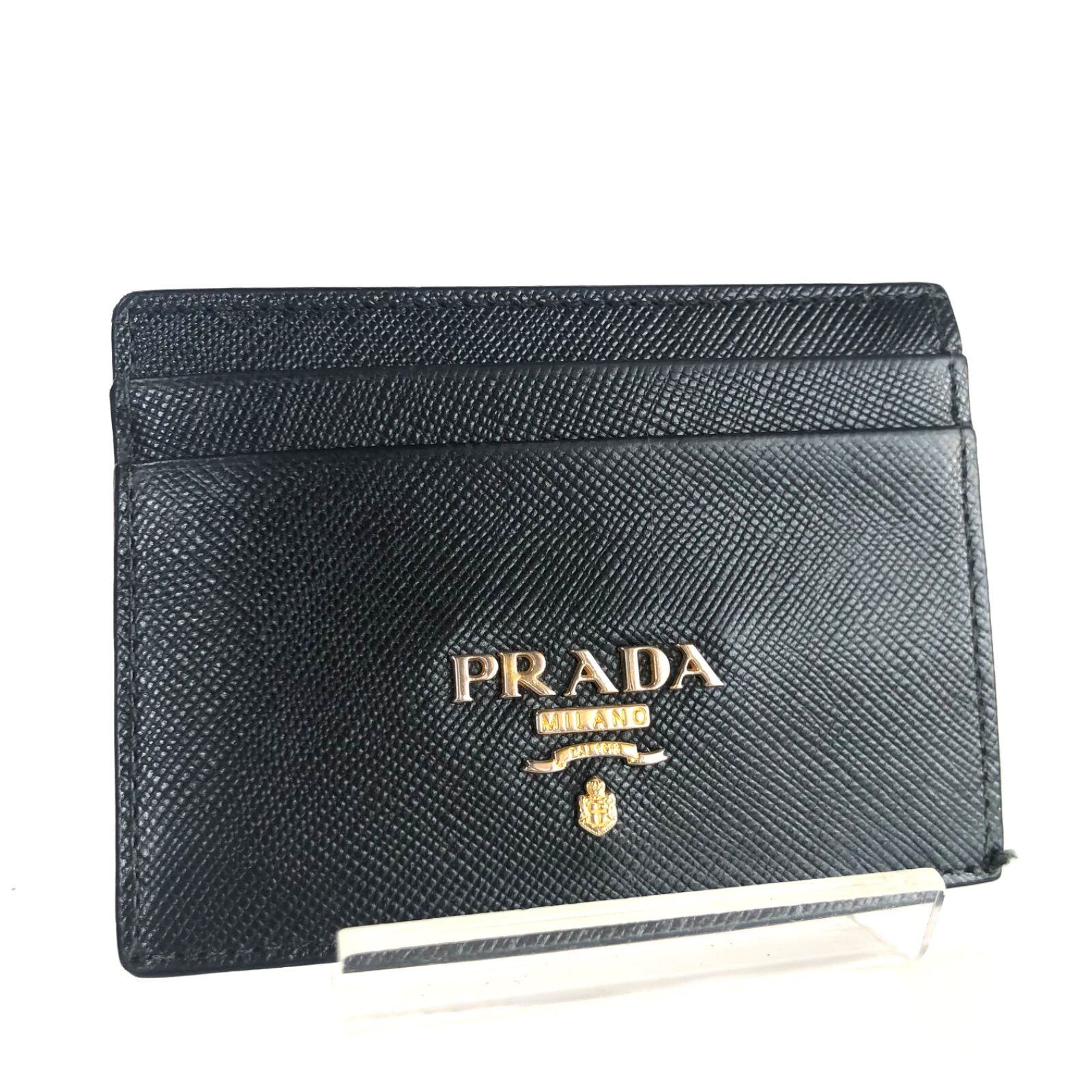■美品■PRADA プラダ サフィアーノレザー 金ロゴ金具 カードケース パスケース 定期入れ ブラック メンズ レディース ユニセックス