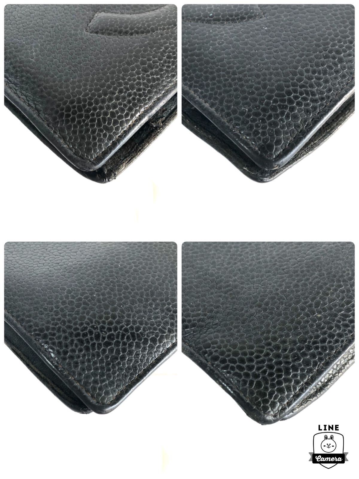 ■鑑定済み■CHANEL シャネル キャビアスキン 二つ折り長財布 がま口 ココマーク レザー 本革 ブラック ゴールド金具 フランス製 シリアルシールあり