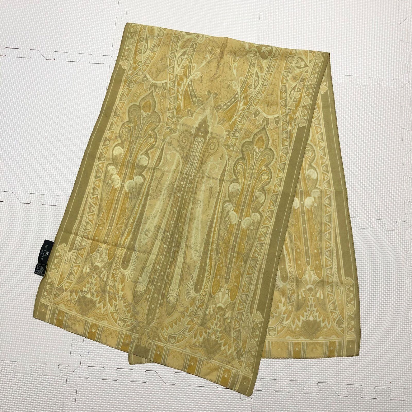 ■美品■ETRO エトロ ストール ペイズリー風 ウール×シルク ラメ感 イタリア製 イエロー系