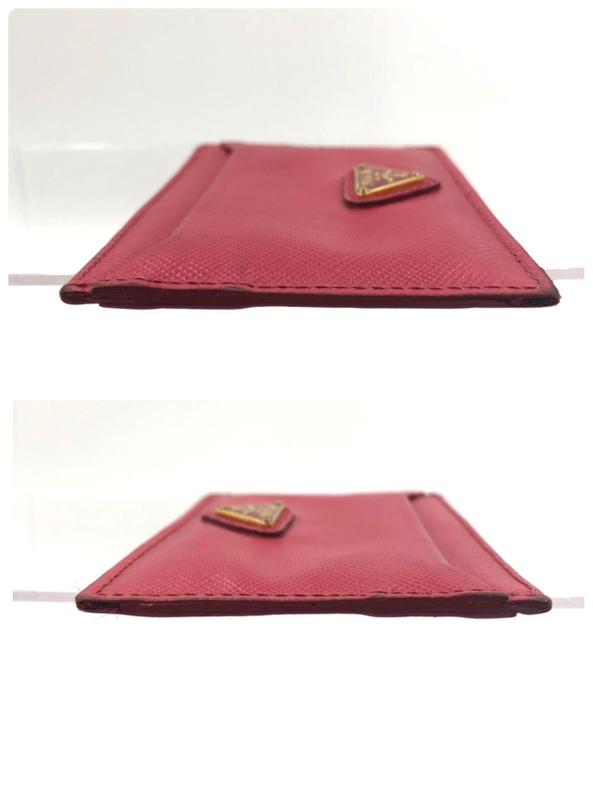 ■良品■PRADA プラダ サフィアーノレザー 三角プレート カードケース ピンク ゴールド金具