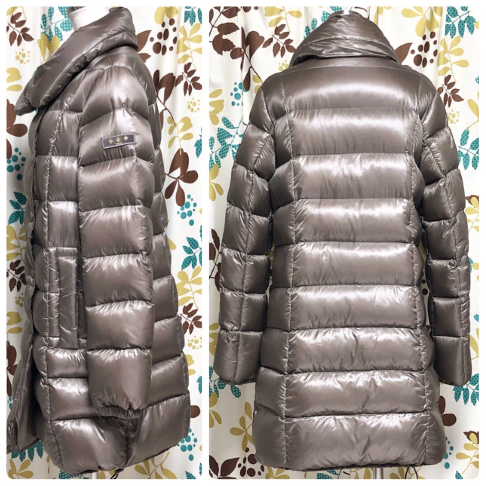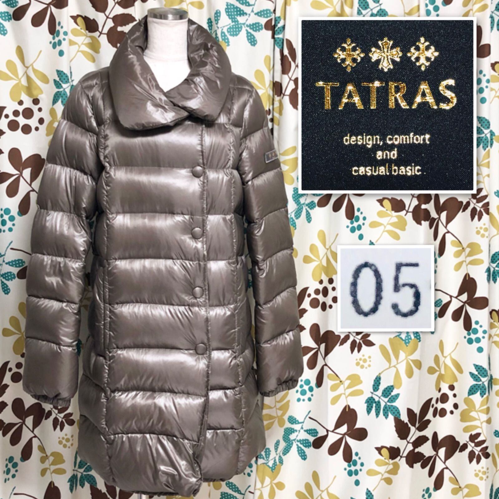 ■極美品■希少ビッグサイズ2XL■TATRAS タトラス ダウンコート ロングコート ダウン95% size05(2XL、3L) ポーランド製 グレージュ 裾ドローコード 左腕ロゴワッペン くるみボタン レディース