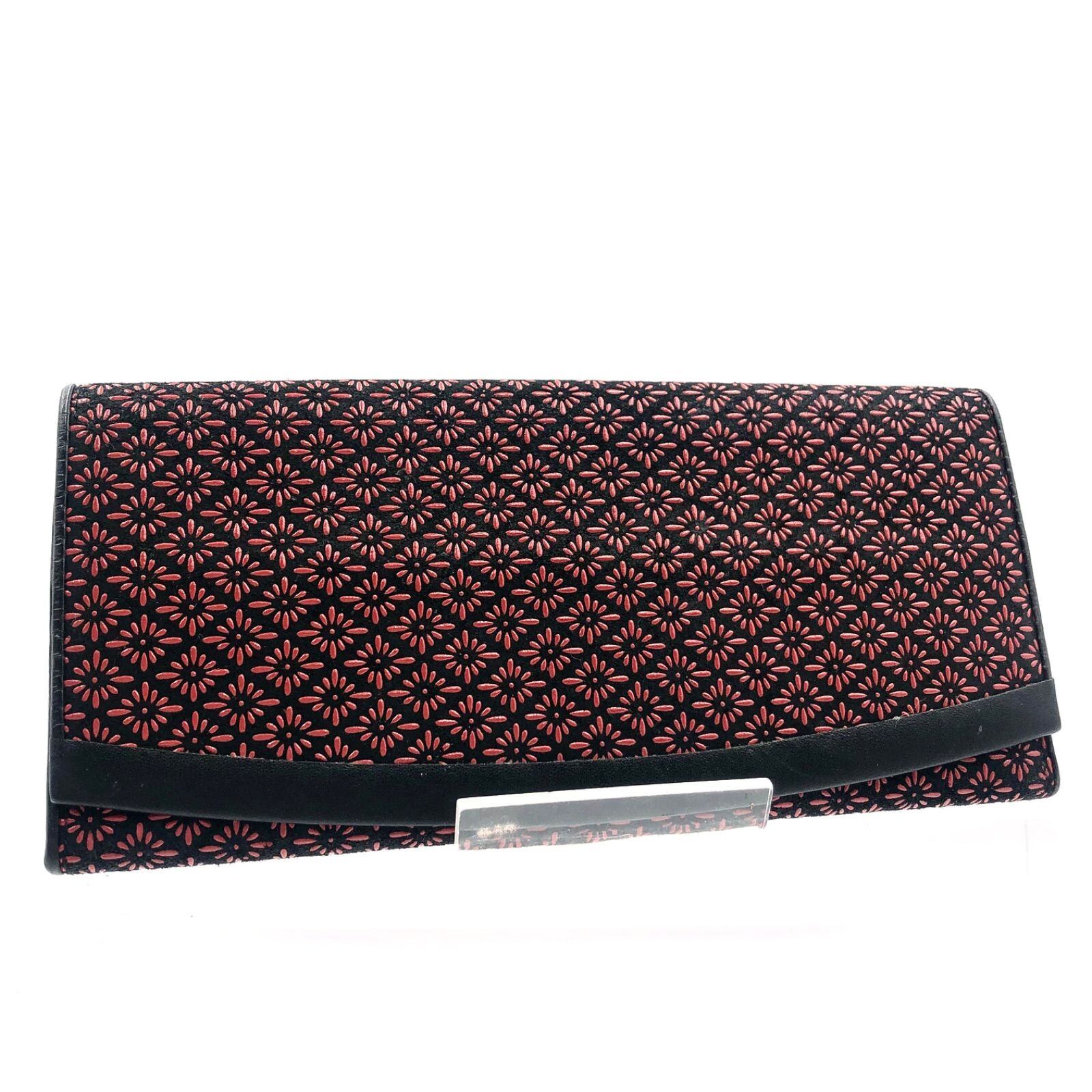 ■美品■印傳屋 INDEN-YA 長財布 甲州印伝 鹿革 ディアスキン 花柄 ブラック×ピンク 伝統工芸 シールあり