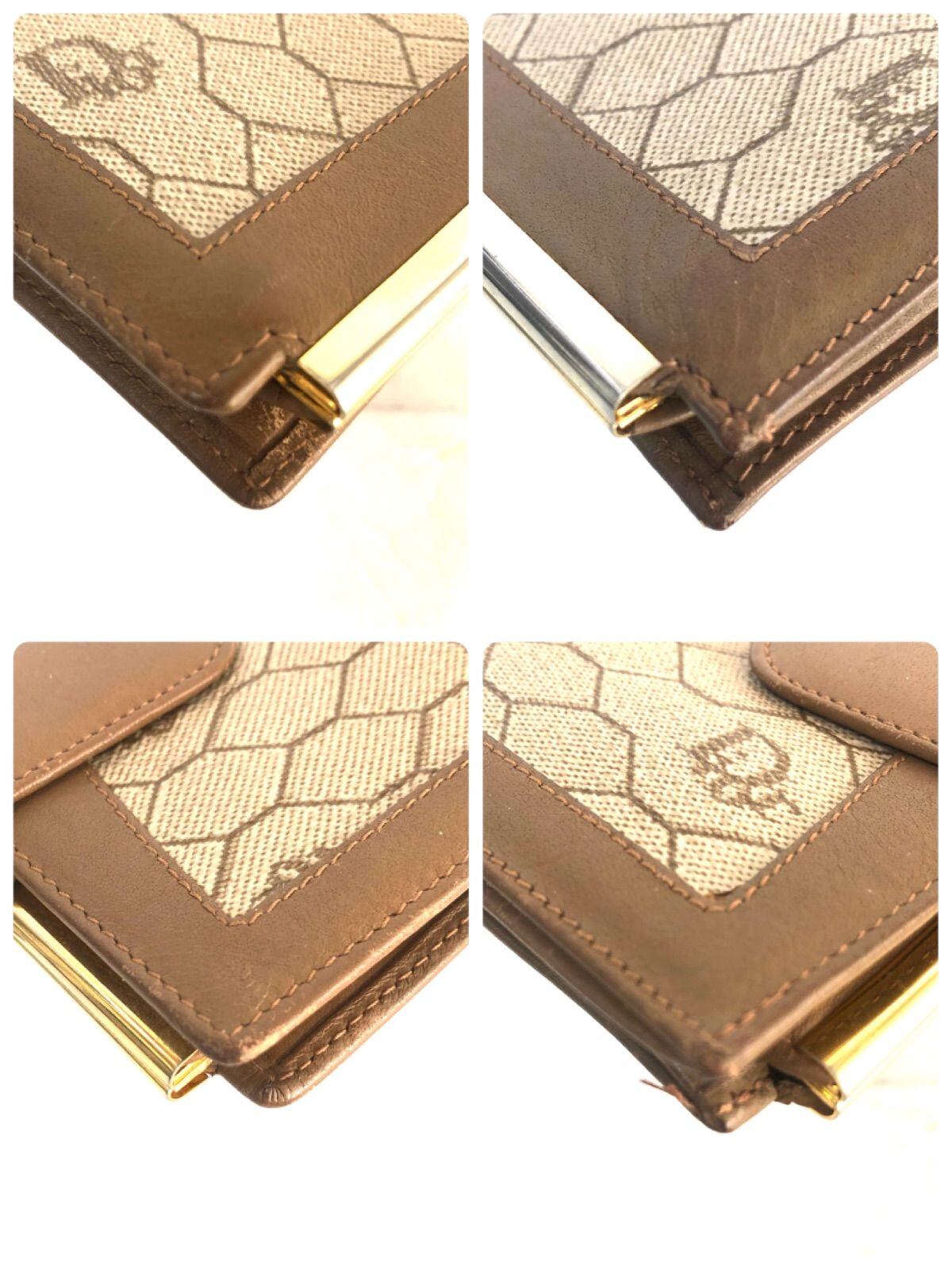 ■美品■Christian Dior クリスチャンディオール ハニカム柄 がま口二つ折り財布 PVC×レザー ブラウン×ベージュ ゴールド金具 スペイン製 レディース