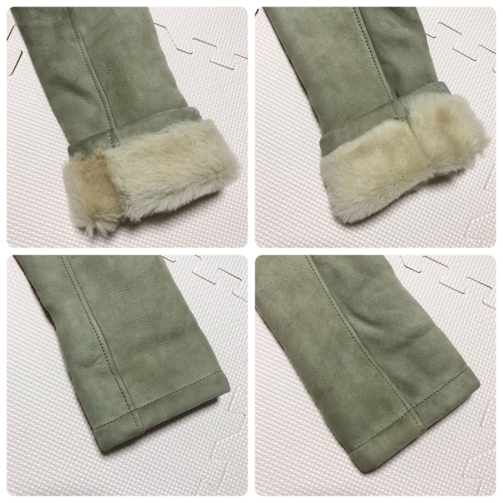 ■良品■希少高級品■LOEWE ロエベ ムートンジャケット size38(M) 羊革 レザー ボア スペイン製 グリーンベージュ系 レディース