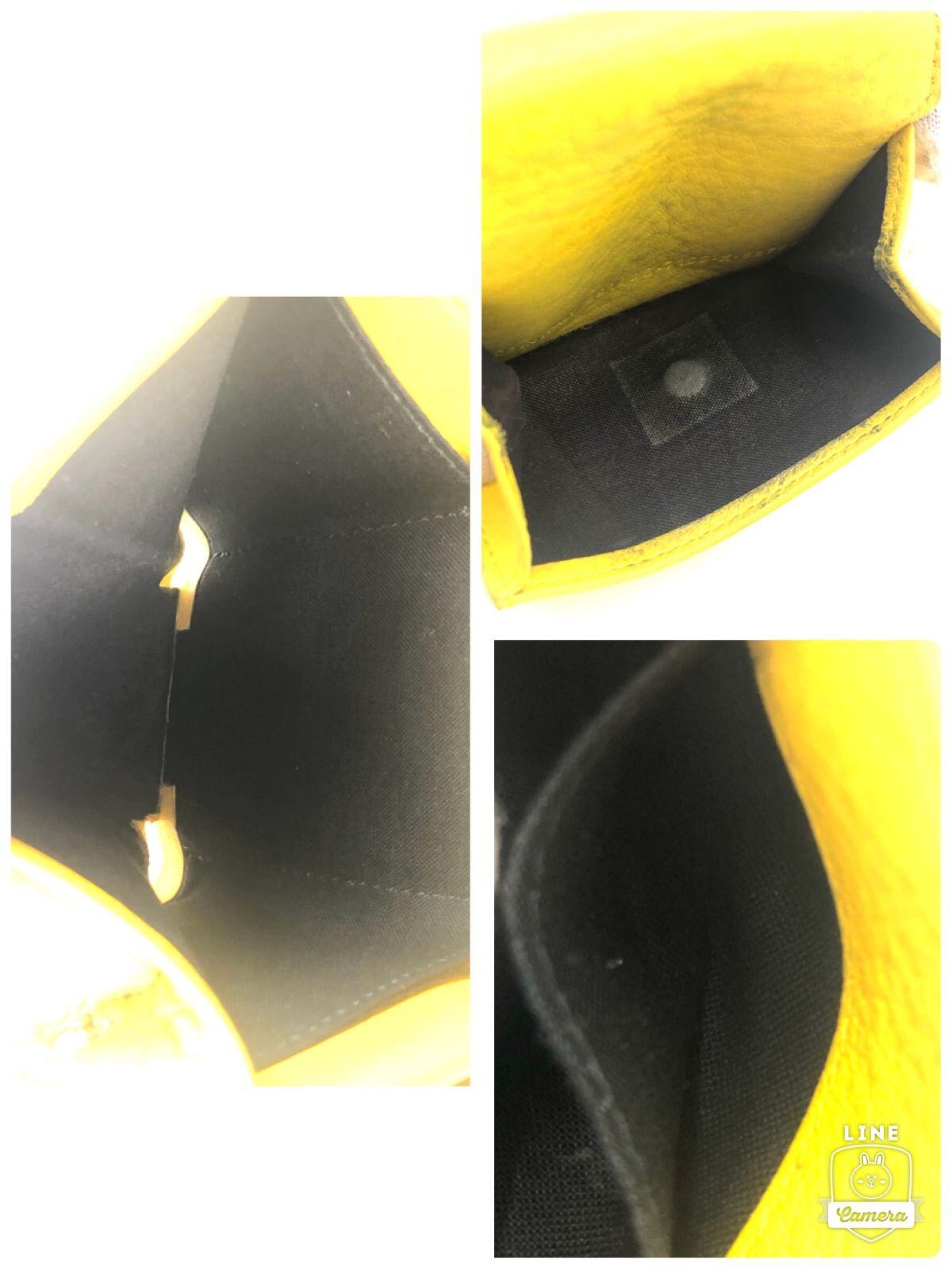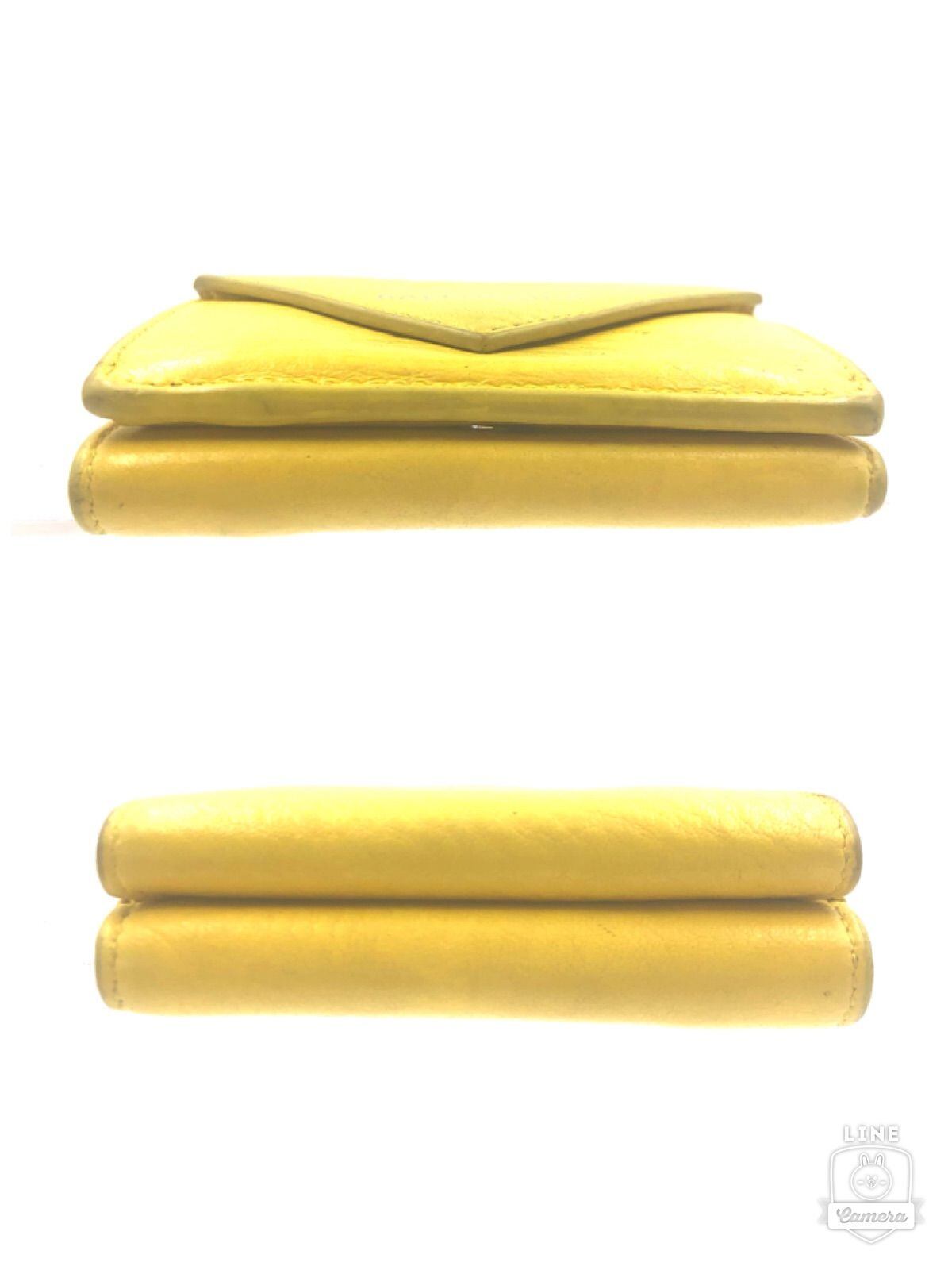 ■良品■BALENCIAGA バレンシアガ ペーパーミニウォレット 三つ折り財布 レター型 イエロー シルバー金具 イタリア製 刻印あり レザー 本革
