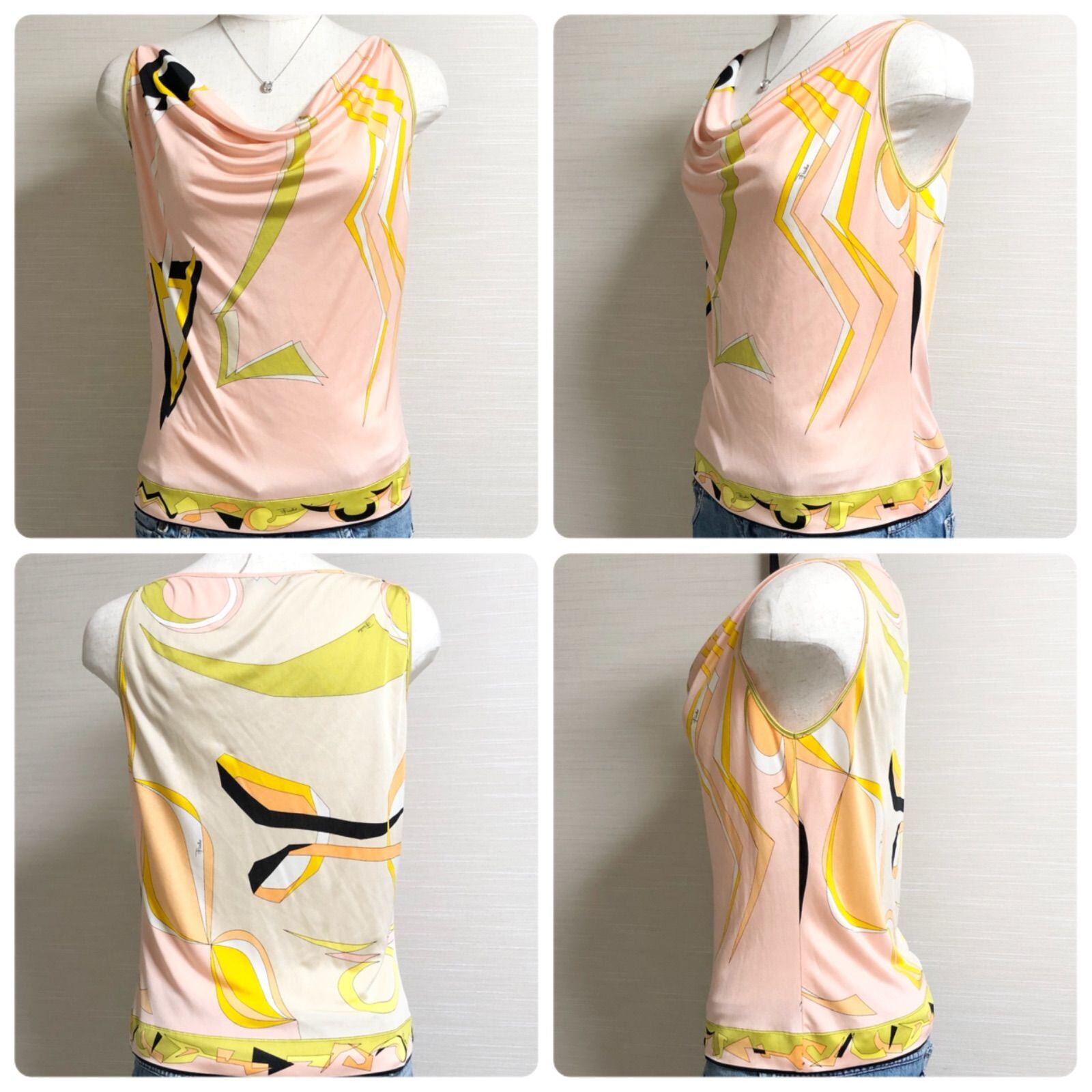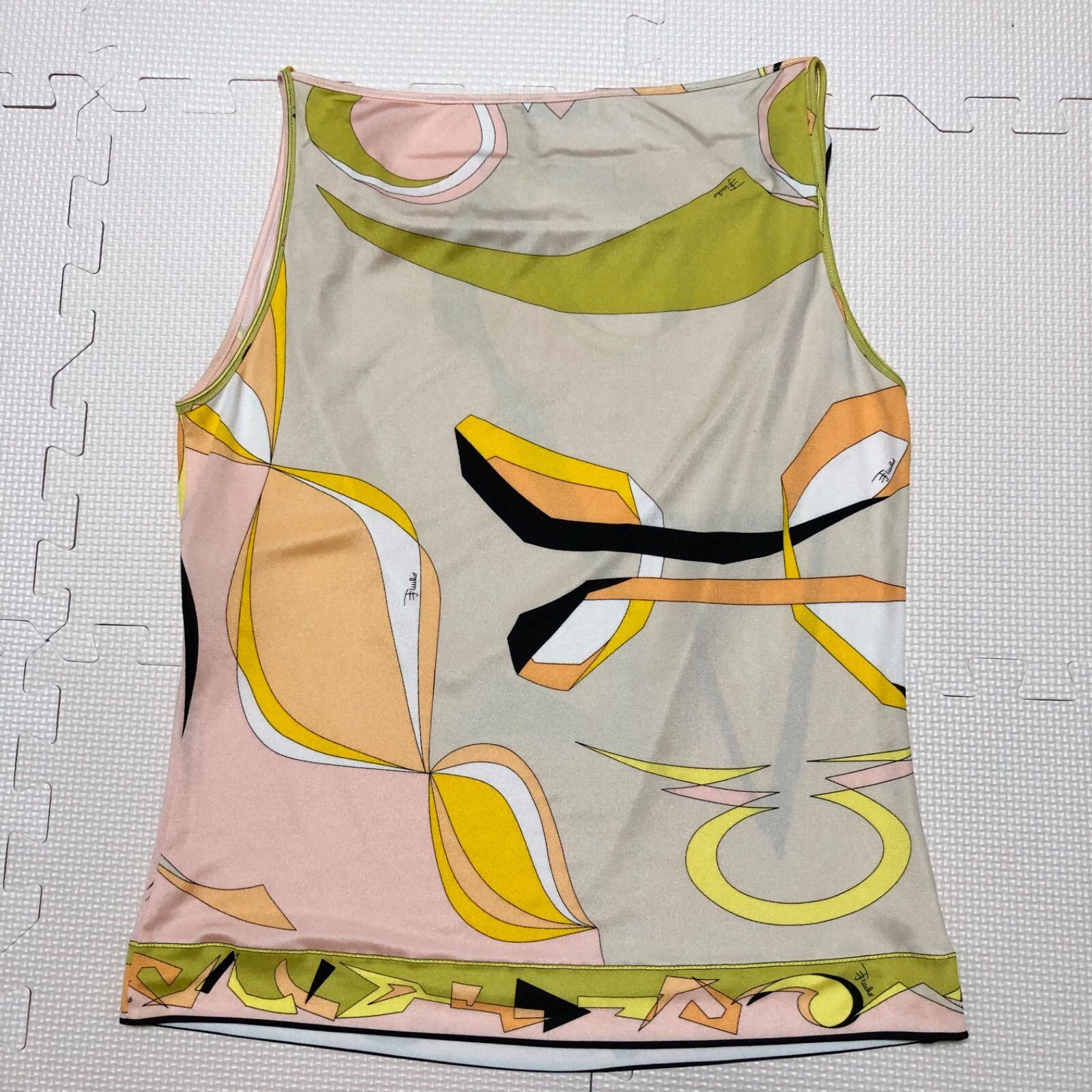 ■美品■EMILIO PUCCI エミリオプッチ プッチ柄総柄 ノースリーブ キャミソールブラウス size ITA 38(M相当) イタリア製 ピンク×マルチカラー シルク100% ルイヴィトングループ