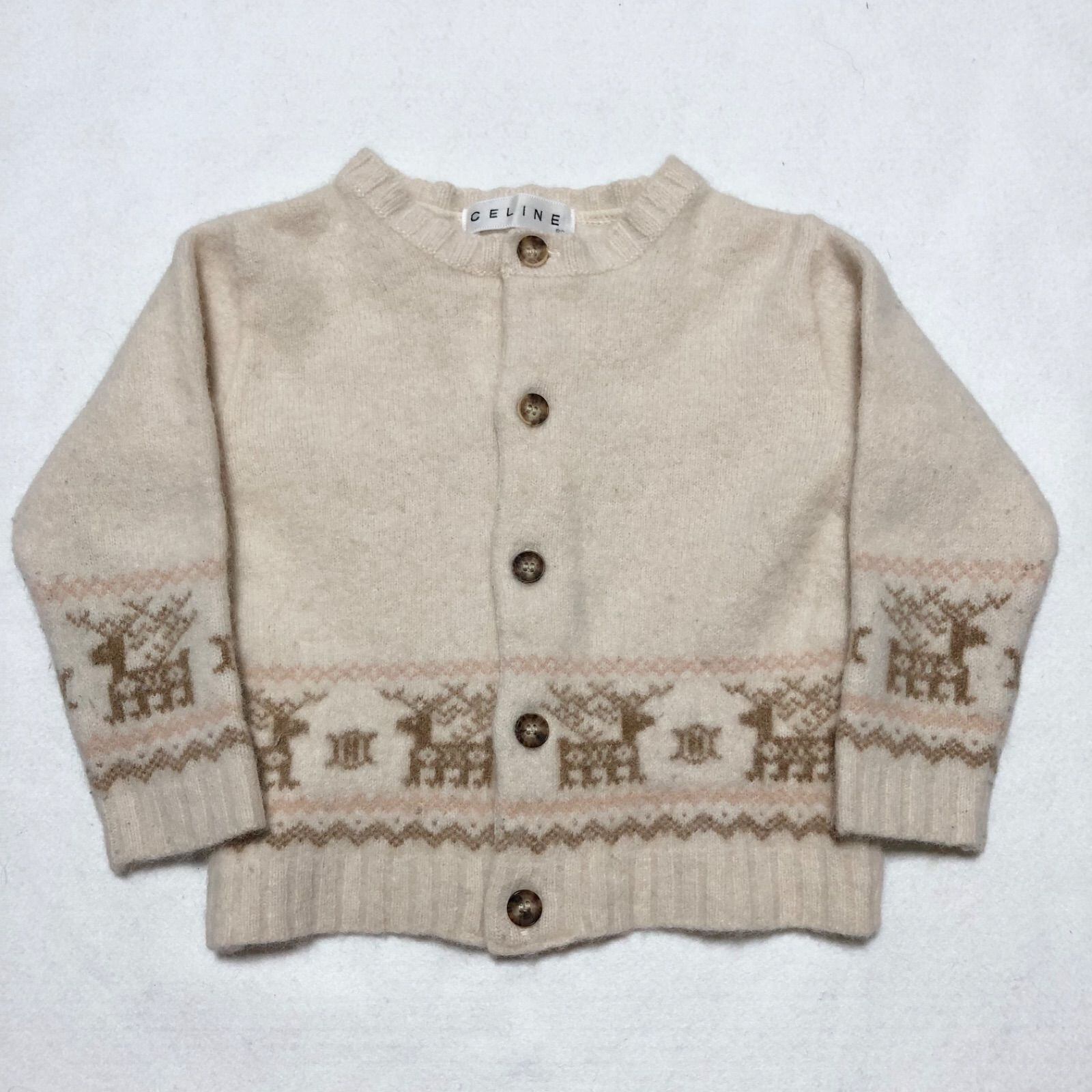 ■アンゴラ混■CELINE セリーヌ ノルディック柄 セーター カーディガン 子供服 キッズサイズ80 オンワード樫山 ベージュ 日本製