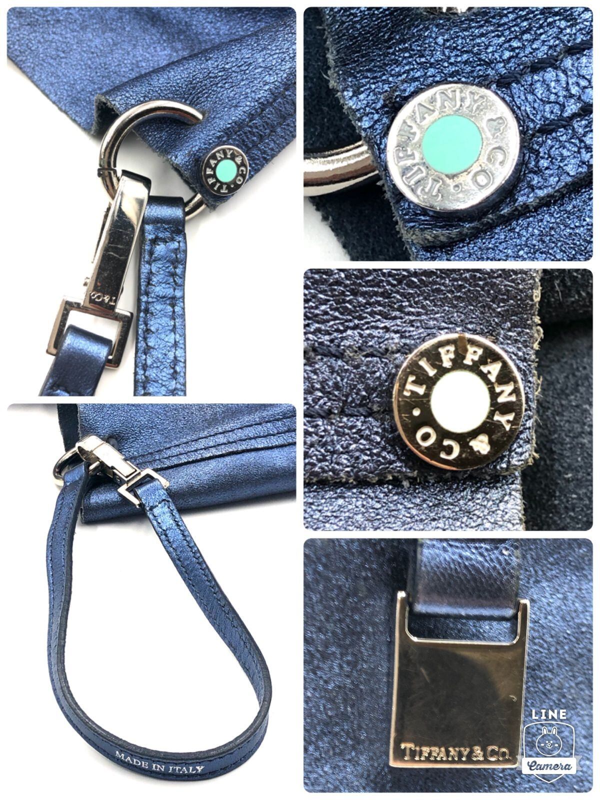 TIFFANY&Co. ティファニー リバーシブル トートバッグ ブルー×グレー ロゴボタン シルバー金具