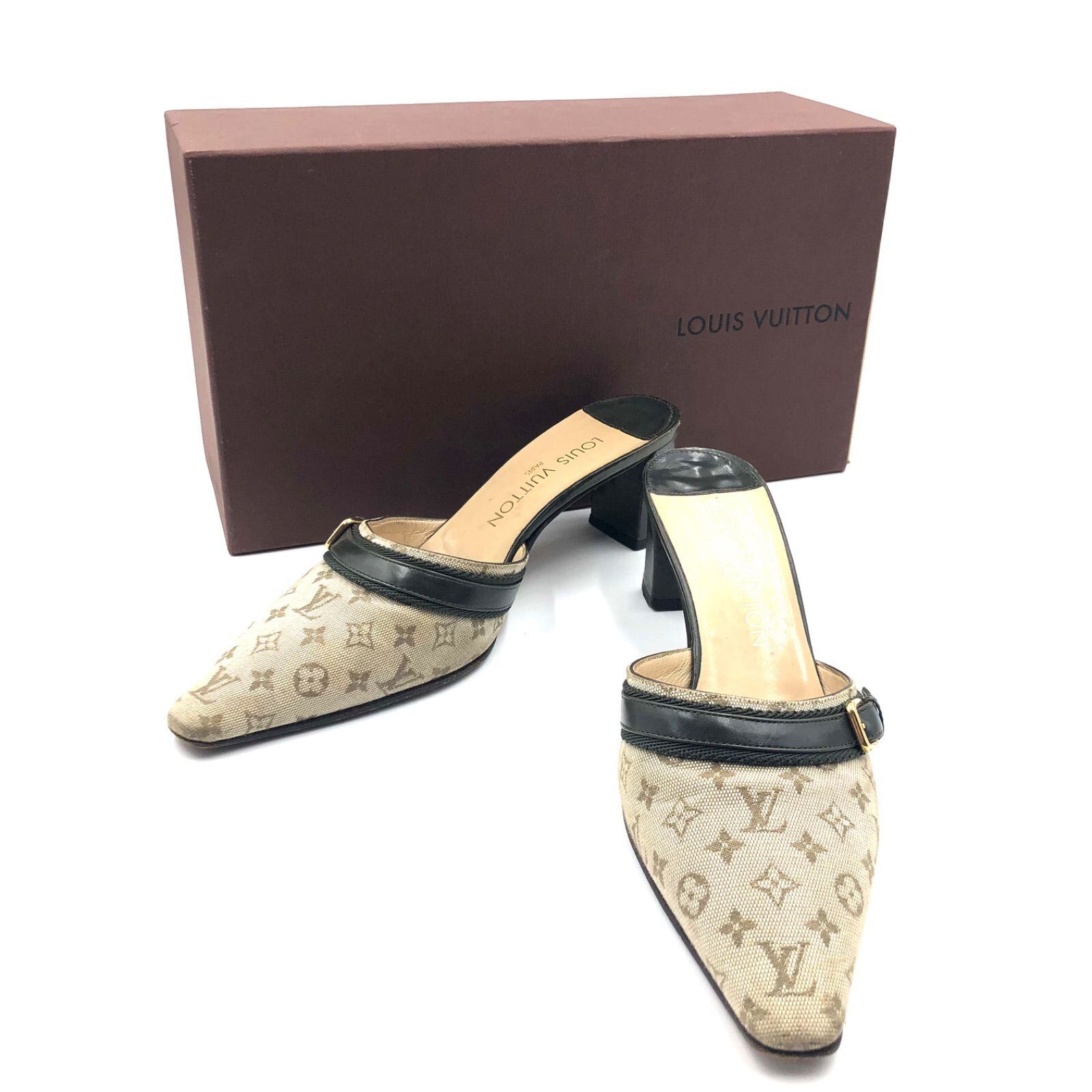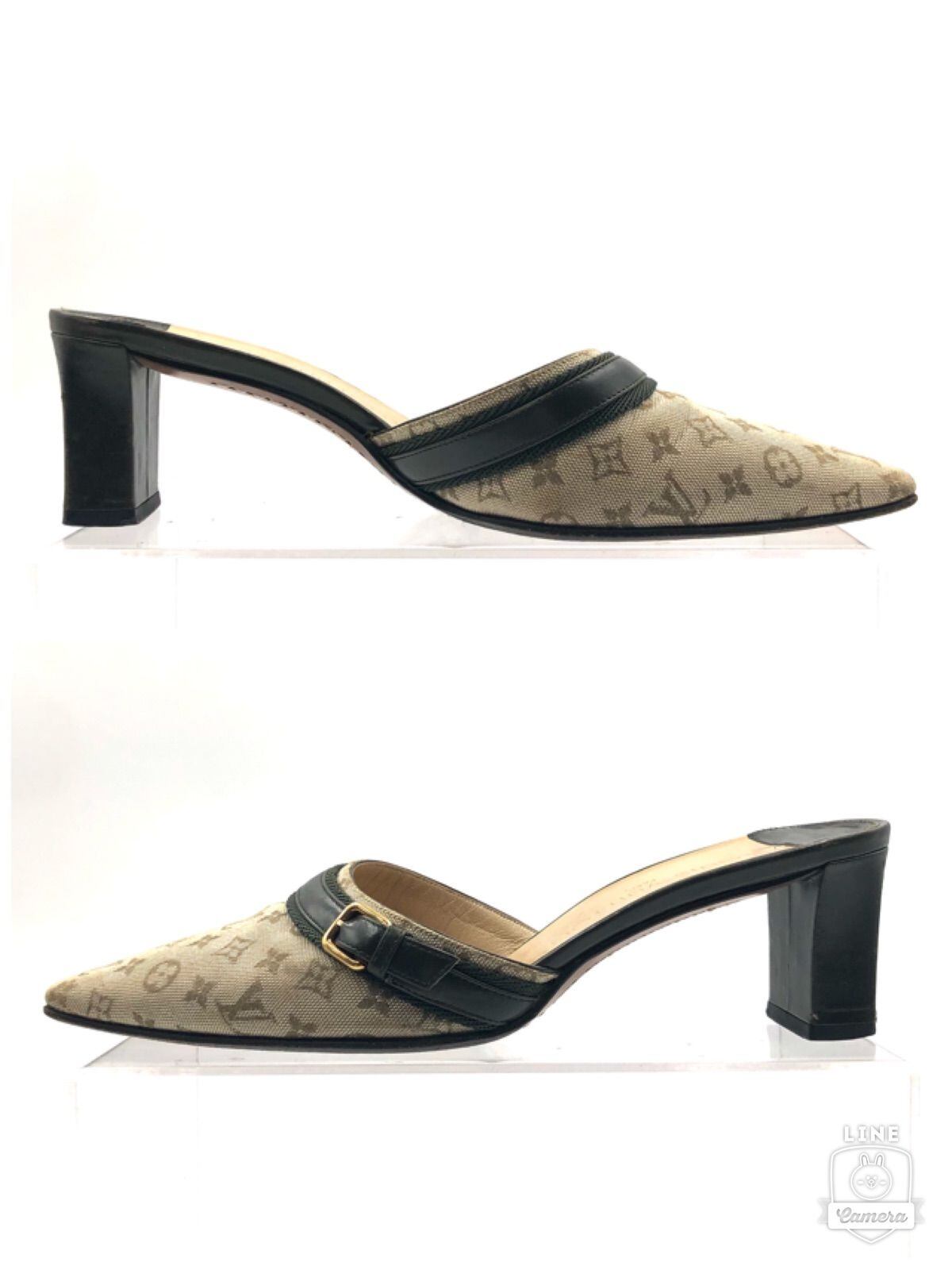LOUIS VUITTON ルイヴィトン モノグラムミニ カーキ オープンバックサンダル ミュール キャンバス×レザー イタリア製 サイズ36.5(23.5cm) 刻印あり レディース