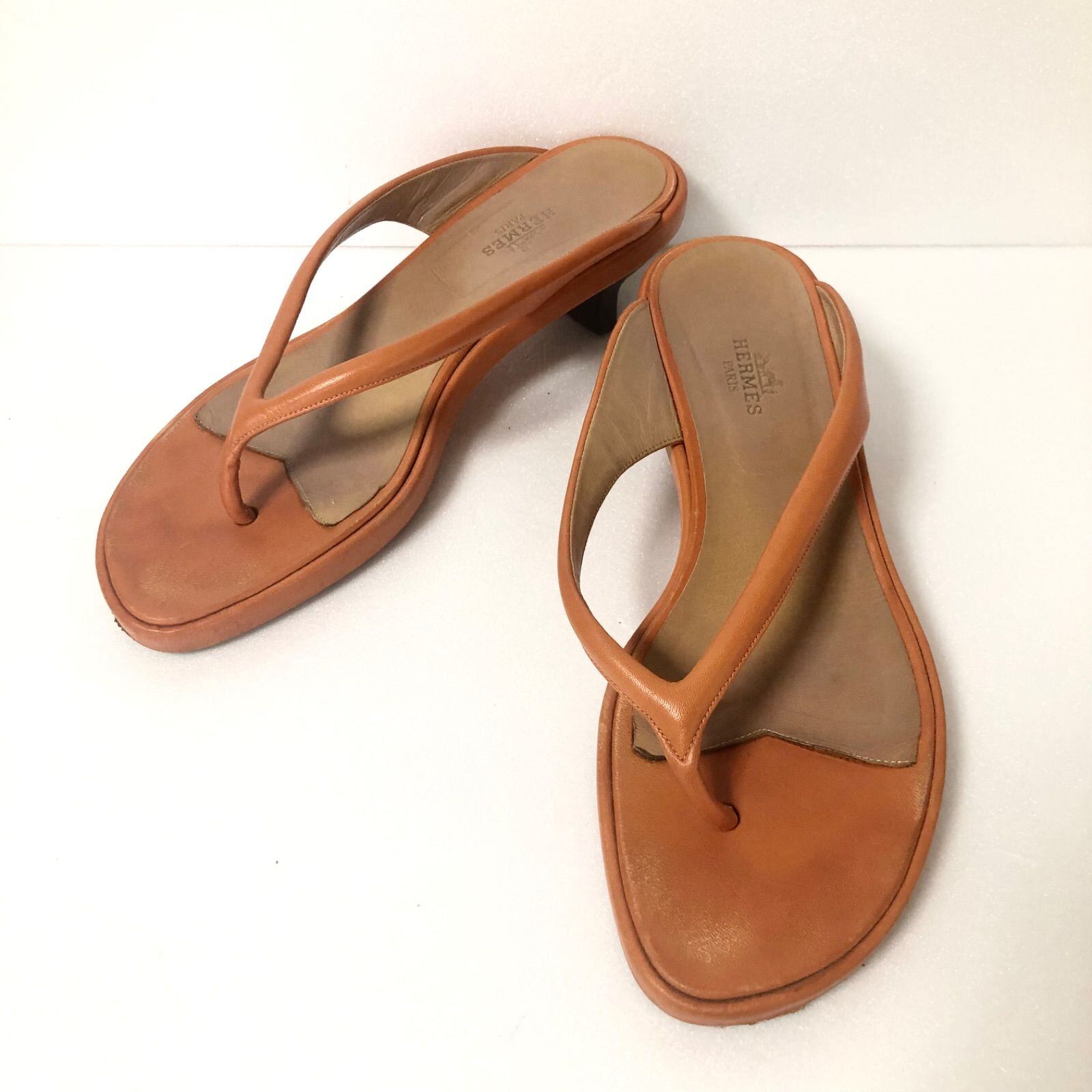 ■希少■HERMES エルメス SEMELLE CUIR レザーサンダル トングサンダル オレンジ×ベージュ エルメスカラー イタリア製 22~22.5cm程度