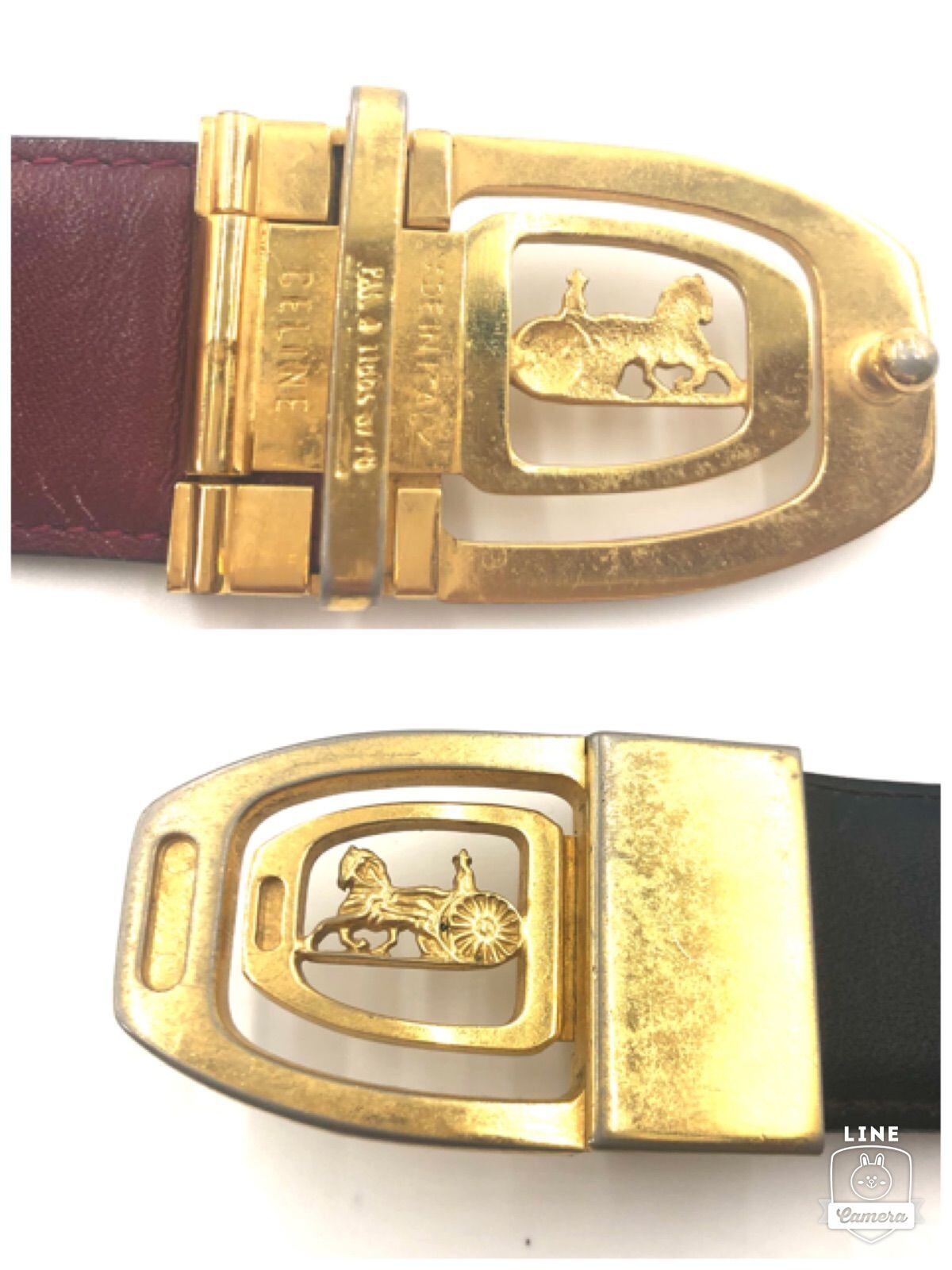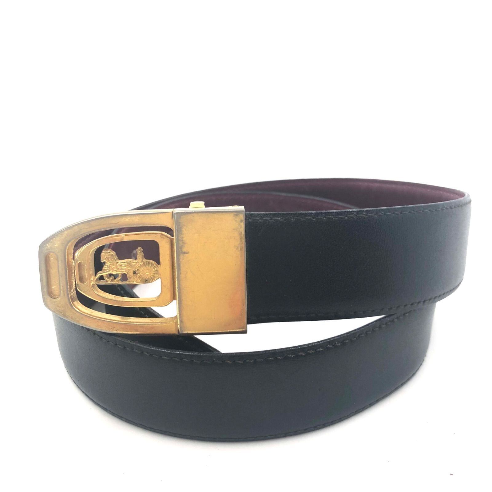 CELINE セリーヌ 馬車金具 ベルト イタリア製 2way リバーシブル ブラック×ボルドー レザー ウエスト最大64.5cm オールドセリーヌ ヴィンテージ レディース