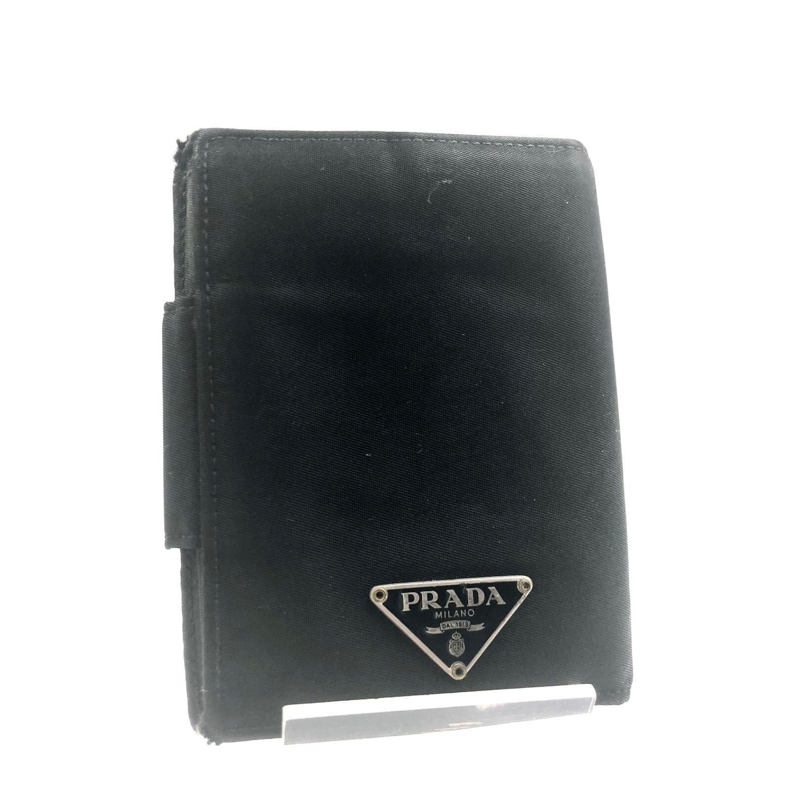 PRADA プラダ テスートナイロン ポコノ 三角プレート ミニ財布 二つ折り財布 ブラック シルバー金具 イタリア製