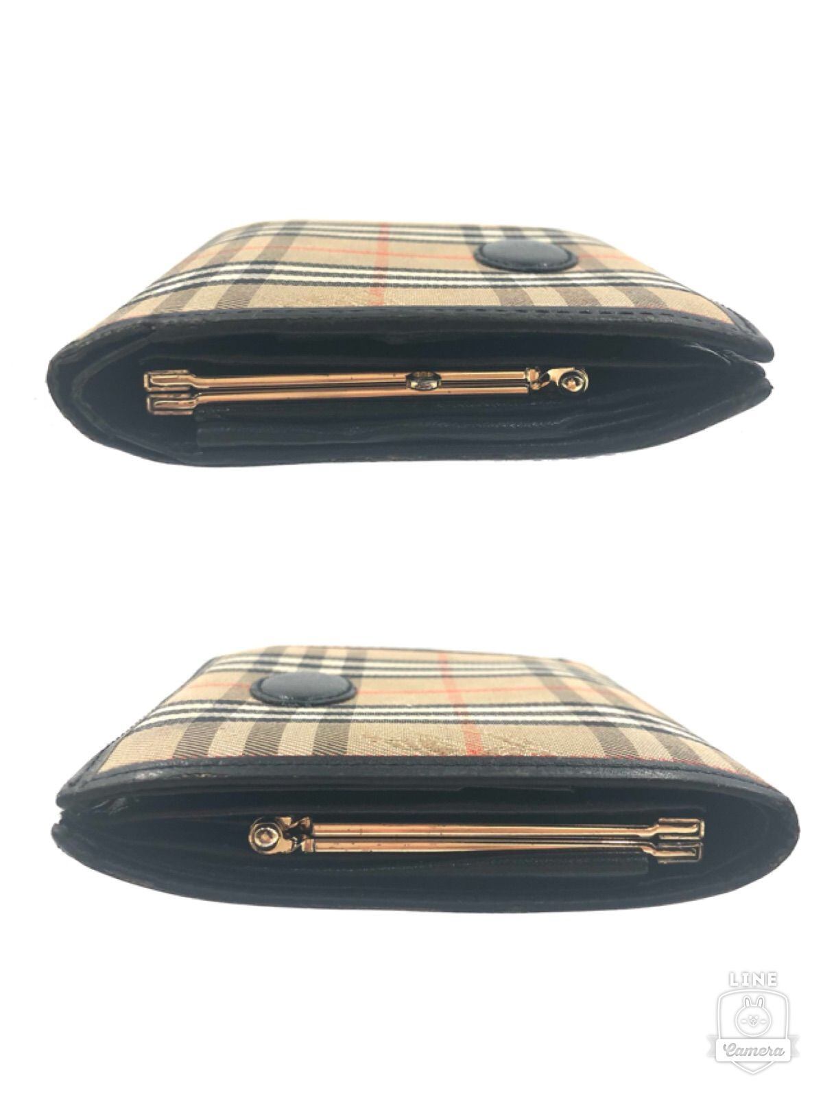 Burberrys バーバリー ノバチェック シャドーホース がま口二つ折り財布 キャンバス×レザー ベージュ ゴールド金具 レディース