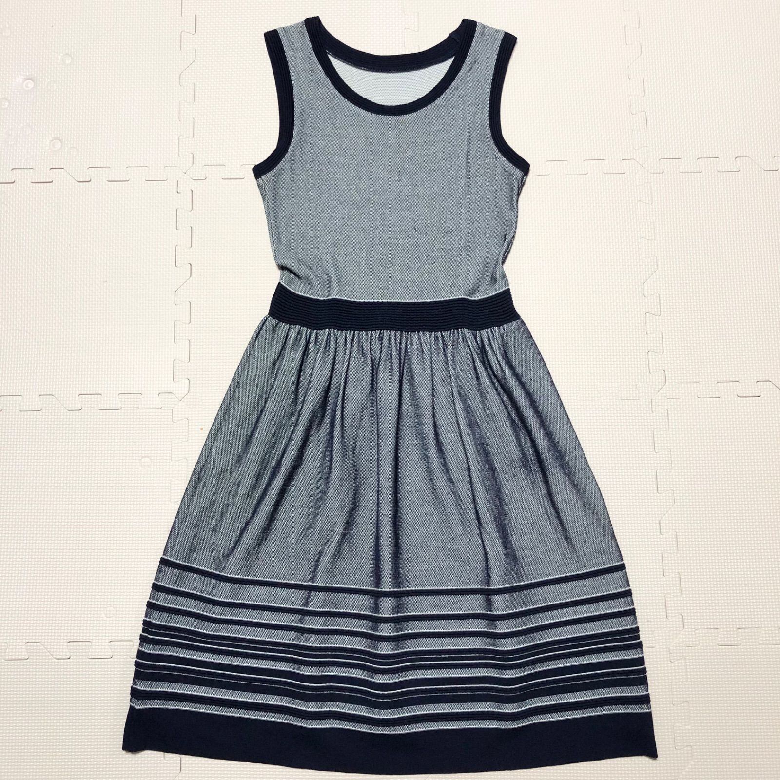 ■高級ライン■FOXY BOUTIQUE フォクシーブティック ニットドレス ワンピース ノースリーブ size38(M) 日本製 ブラウンタグ(2008~2014年頃) ネイビー 裏地なし ウエストゴム ウエスト切替 ギャザー フレアー ストレッチ素材