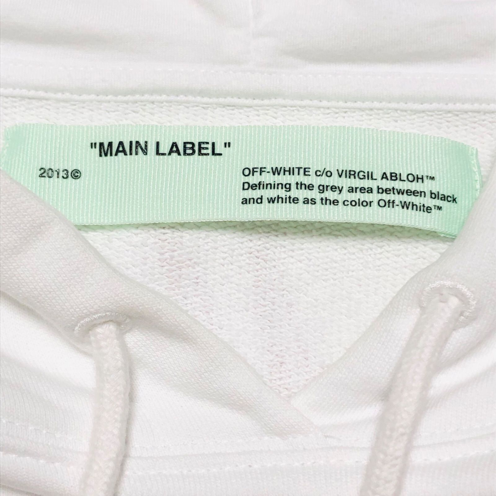 ■良品■希少■Off-White オフホワイト MAIN LABEL 前後ロゴ プルオーバーパーカー クロップド丈 フーディー フード オーバーサイズ sizeXS ポルトガル製 ホワイト×レッド コットン レディース