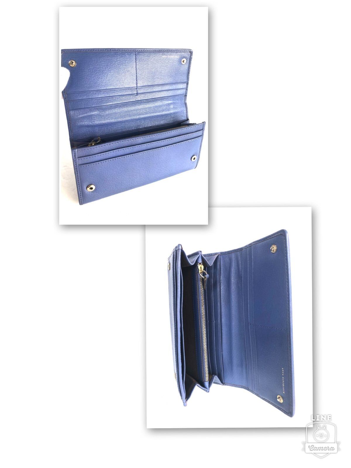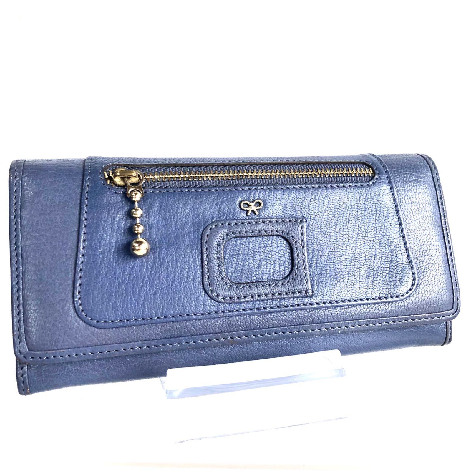 ■美品■Anya Hindmarch アニヤハインドマーチ 長財布 リボン金具 レザー 本革 ブルー ゴールド金具 Wホック タグあり レディース