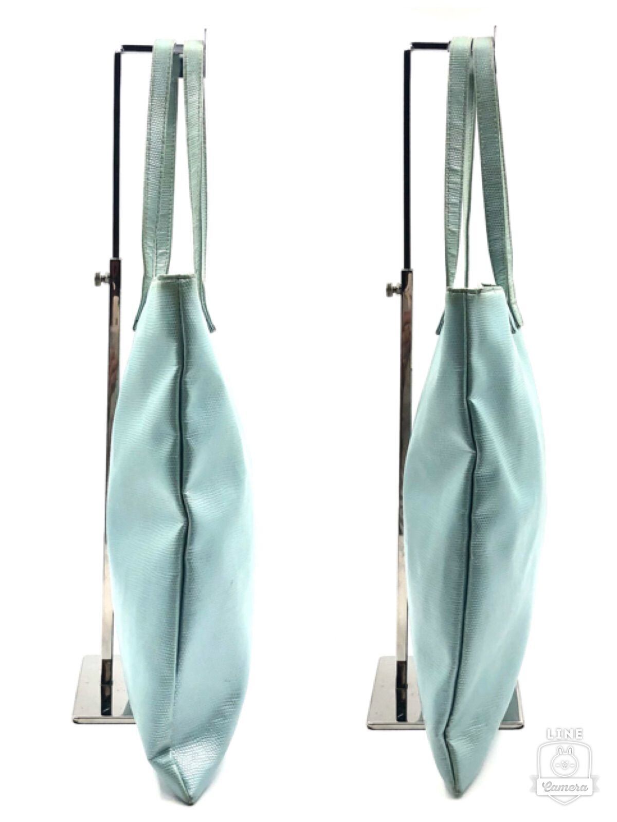 BVLGARI PARFUMS ブルガリパフューム トートバッグ&ミニポーチセット リザード型押しPVC エメラルドブルー シルバー金具 ノベルティ レディース